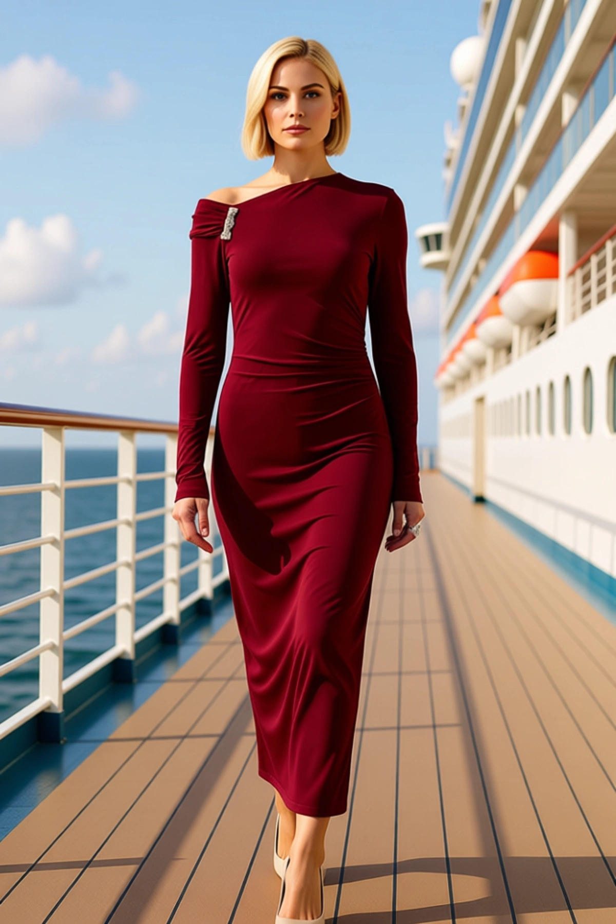 Kadın Asimetrik Yaka Uzun Kol Düz Desenli Bodycon Kalıp Örme Elbise Fonksiyonel Dayanıklı Şık