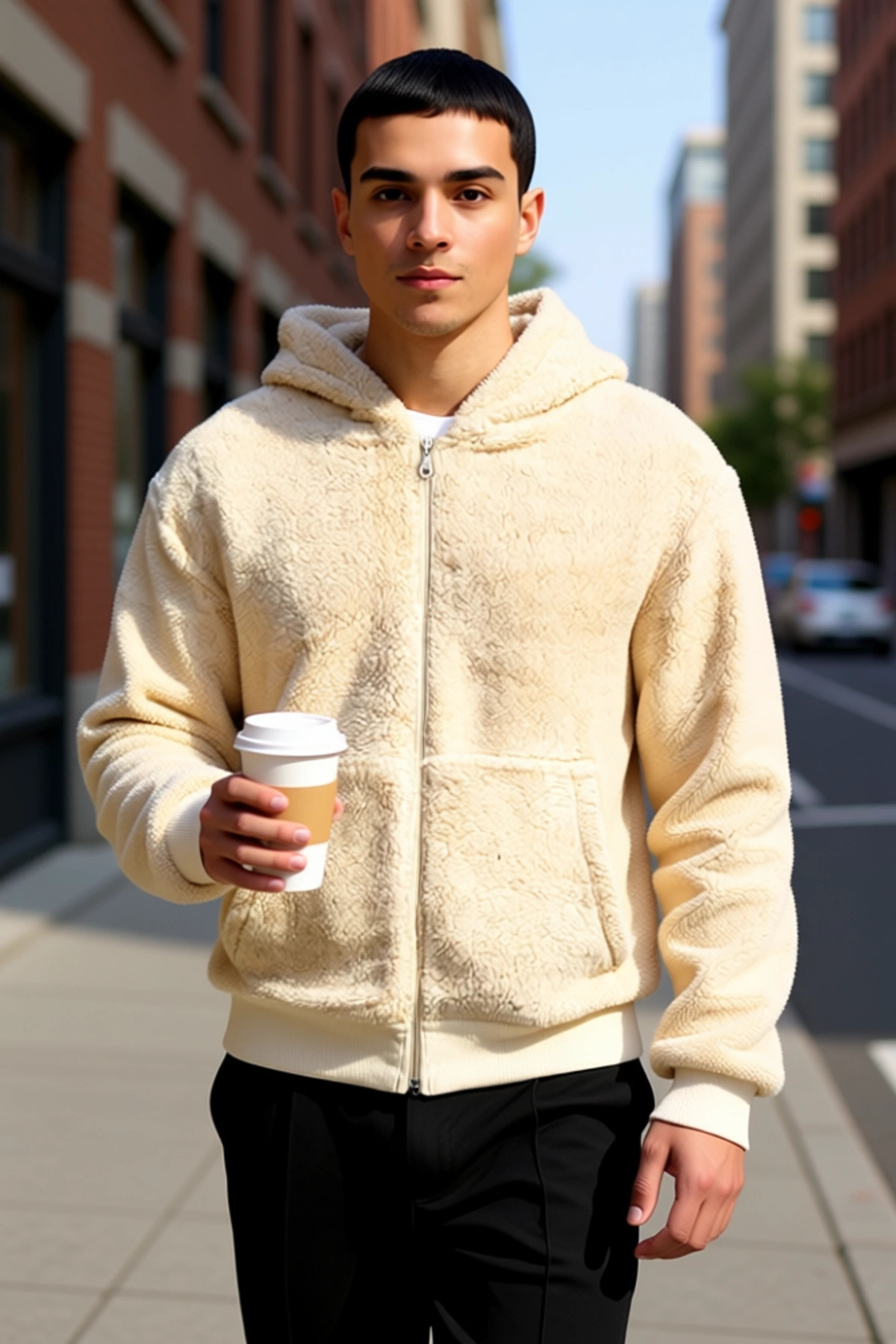 Erkek Kapüşonlu Standart Kol Fermuarlı Peluş Hırka Fonksiyonel Dayanıklı Kaliteli Konforlu