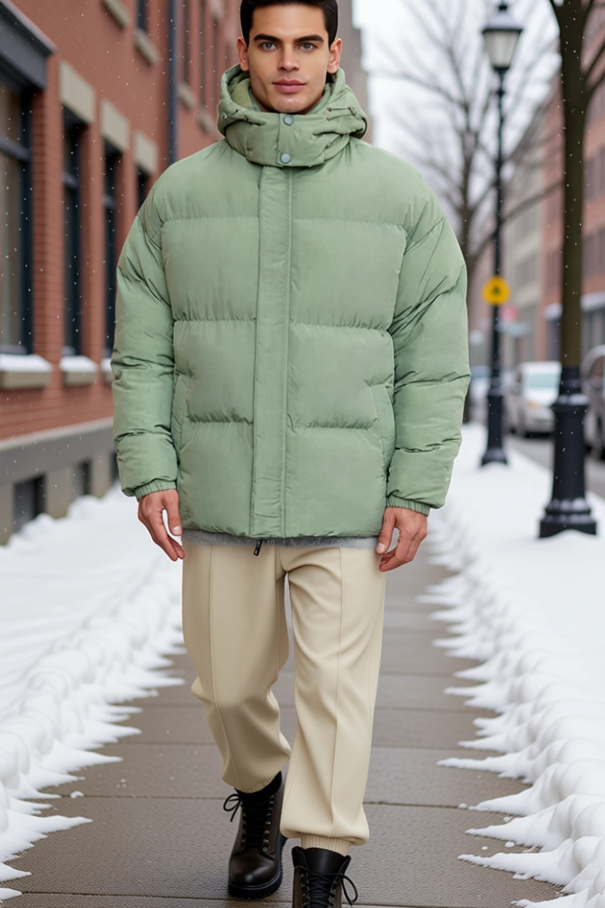 Erkek Kapüşonlu Uzun Kol Standart Kalıp Şişme Mont Fonksiyonel Dayanıklı Kaliteli Konforlu