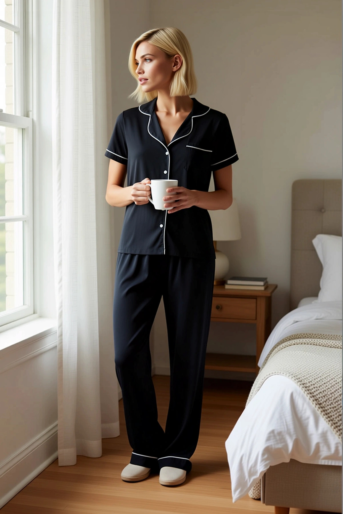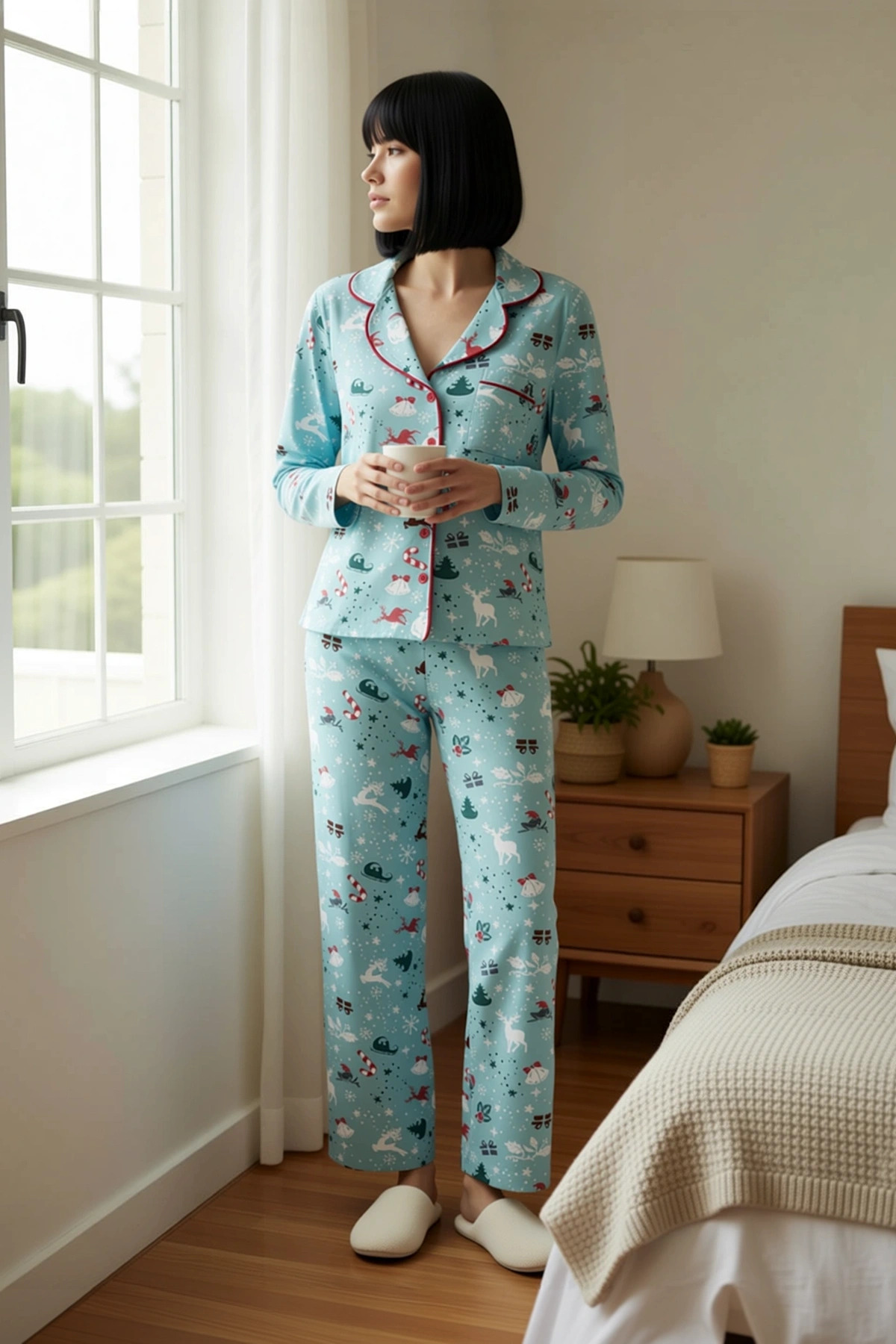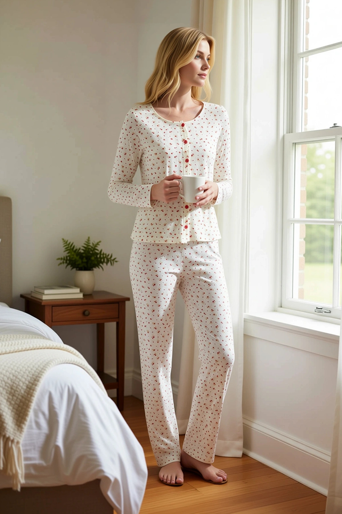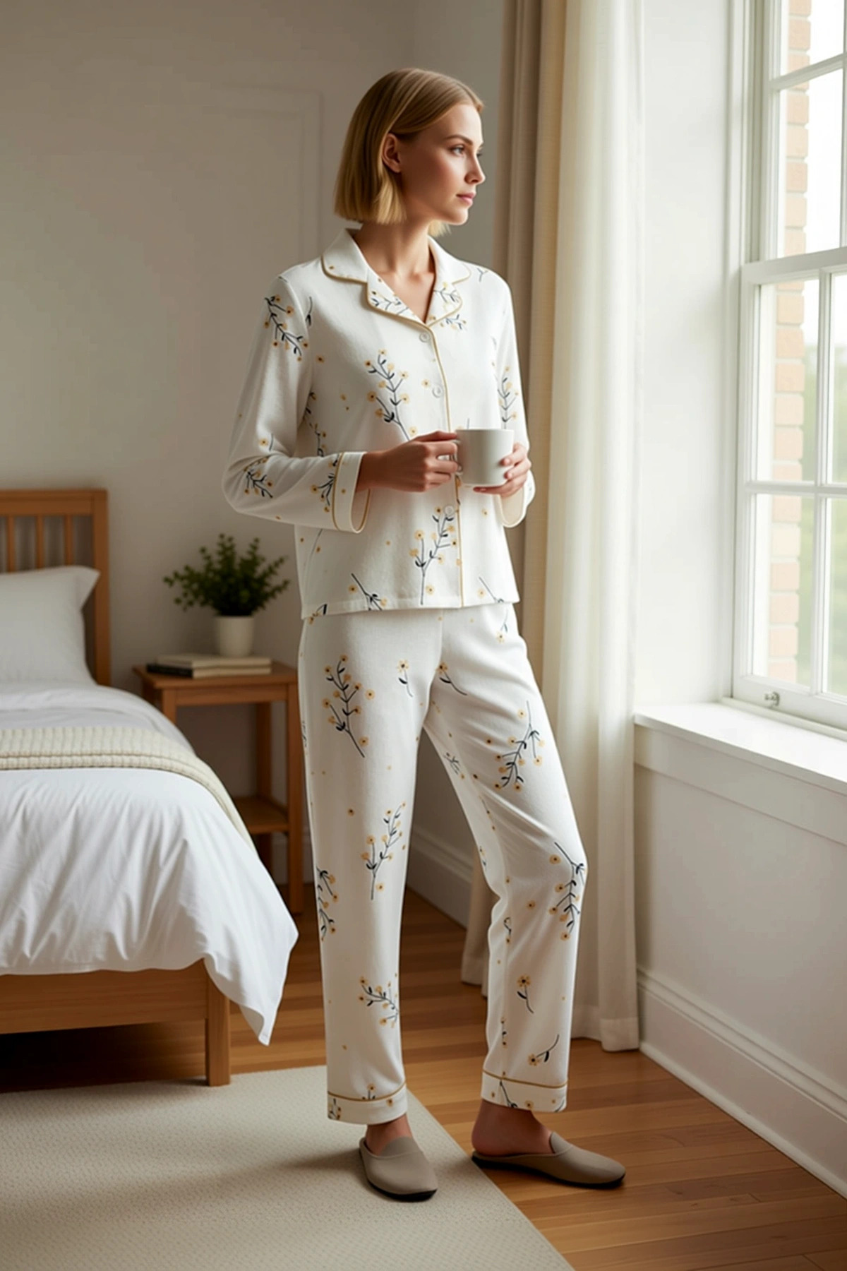 Kadın Gömlek Yaka Standart Kol Regular Kalıp Pijama Takımı Fonksiyonel Kaliteli 0 Pamuk