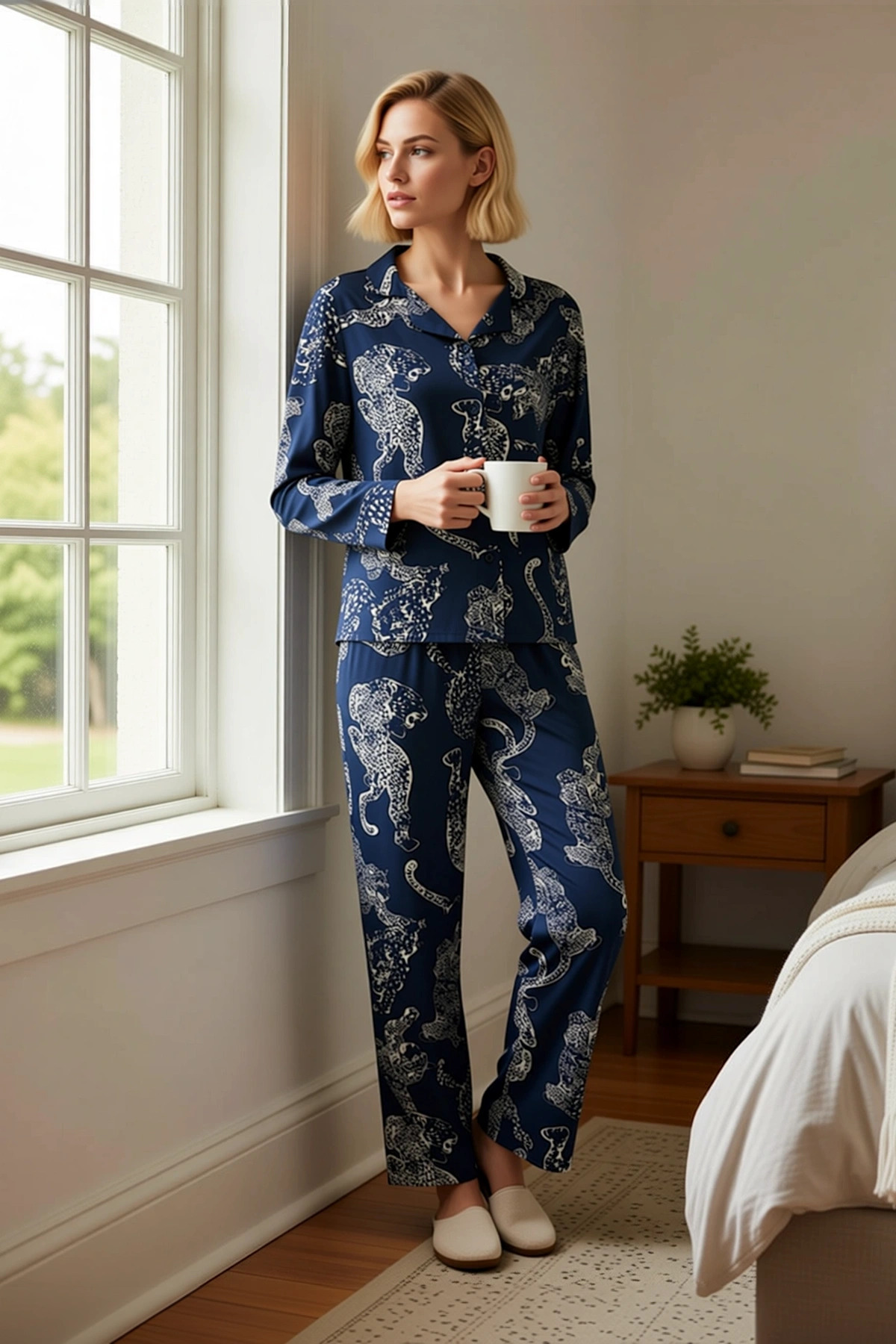 Kadın Gömlek Yaka Standart Kol Regular Kalıp Dokuma Pijama Takımı Büyük Beden Fonksiyonel Şık