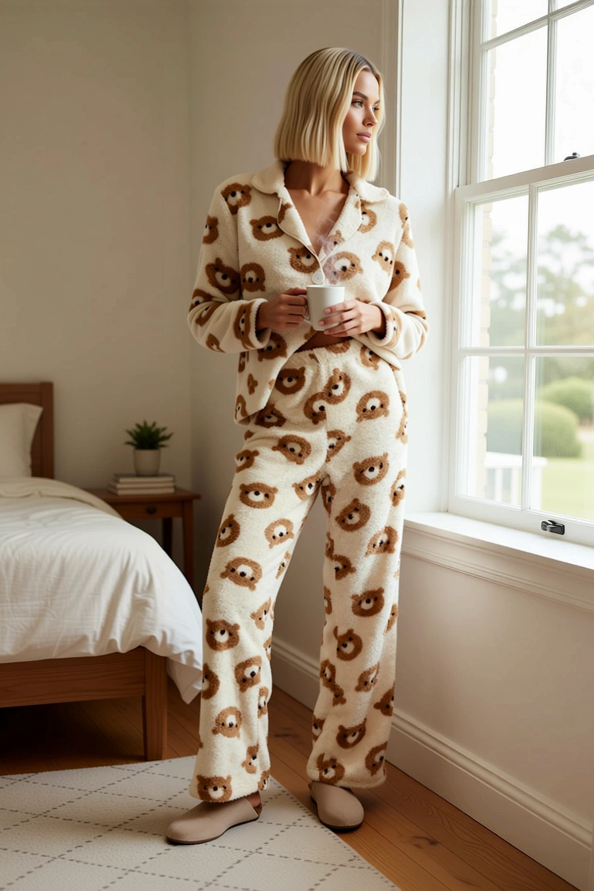 Kadın Gömlek Yaka Standart Kol Regular Kalıp Polar Pijama Takımı Fonksiyonel Dayanıklı Şık