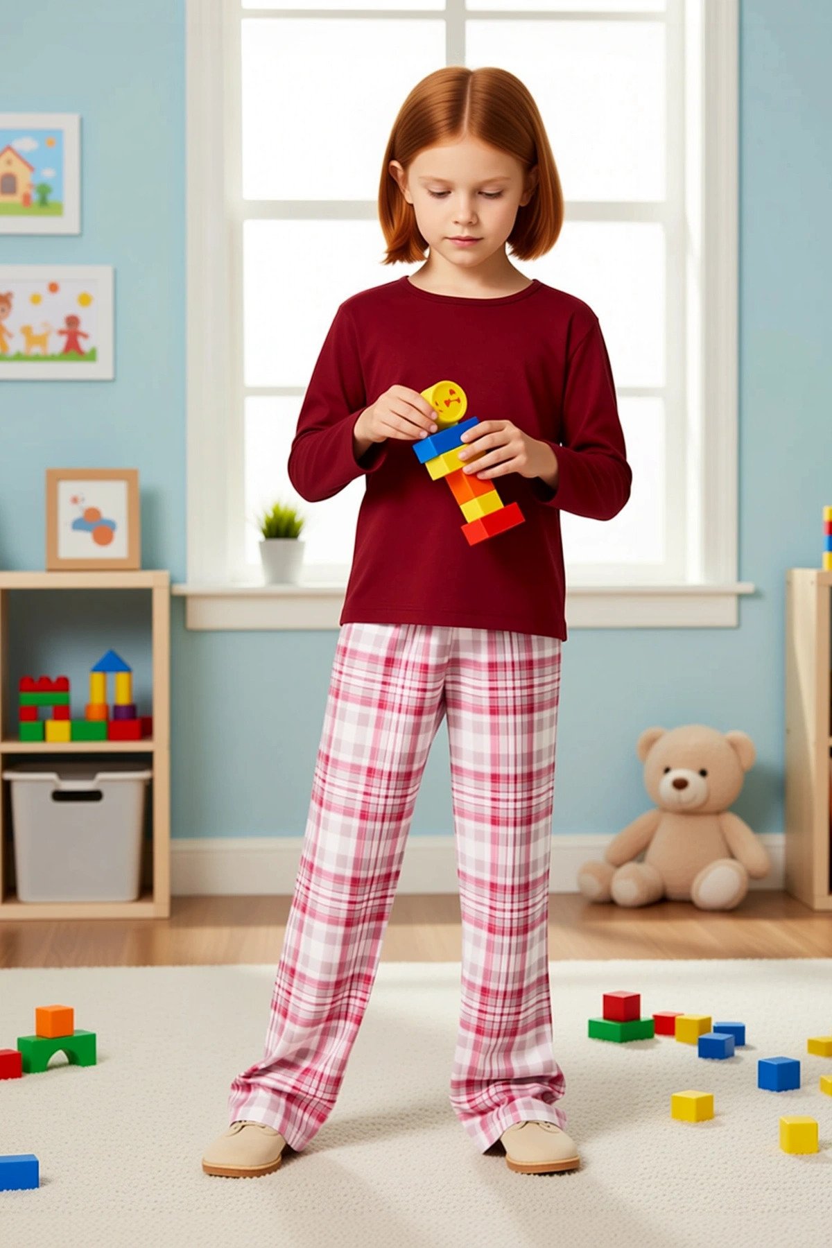 Kız Çocuk Bisiklet Yaka Standart Kol Uzun Kol Regular Kalıp Pijama Takımı Dayanıklı 0 Pamuk