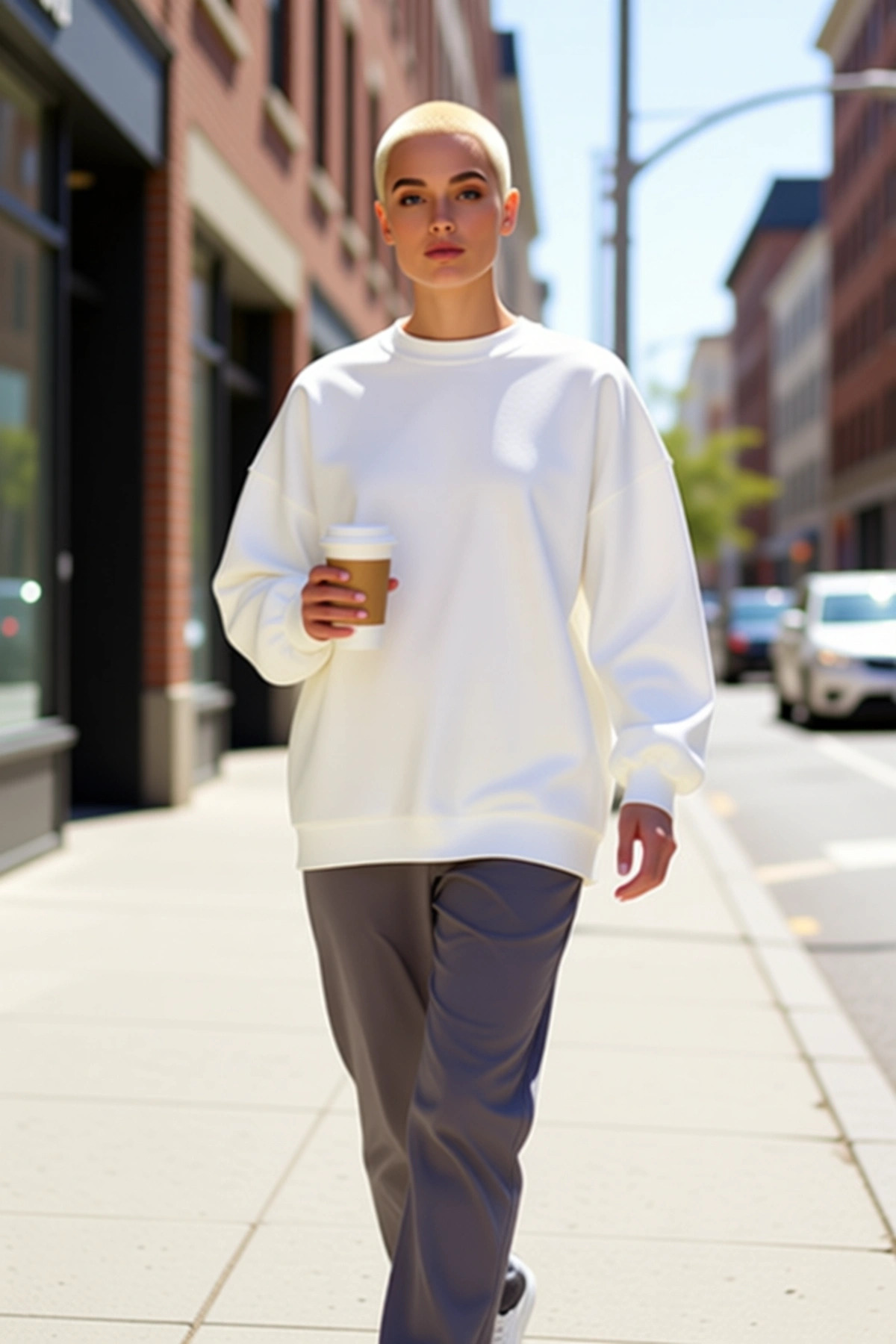 Kadın Bisiklet Yaka Düşük Kol Oversize Kalın Örme Sweatshirt Fonksiyonel Dayanıklı Estetik