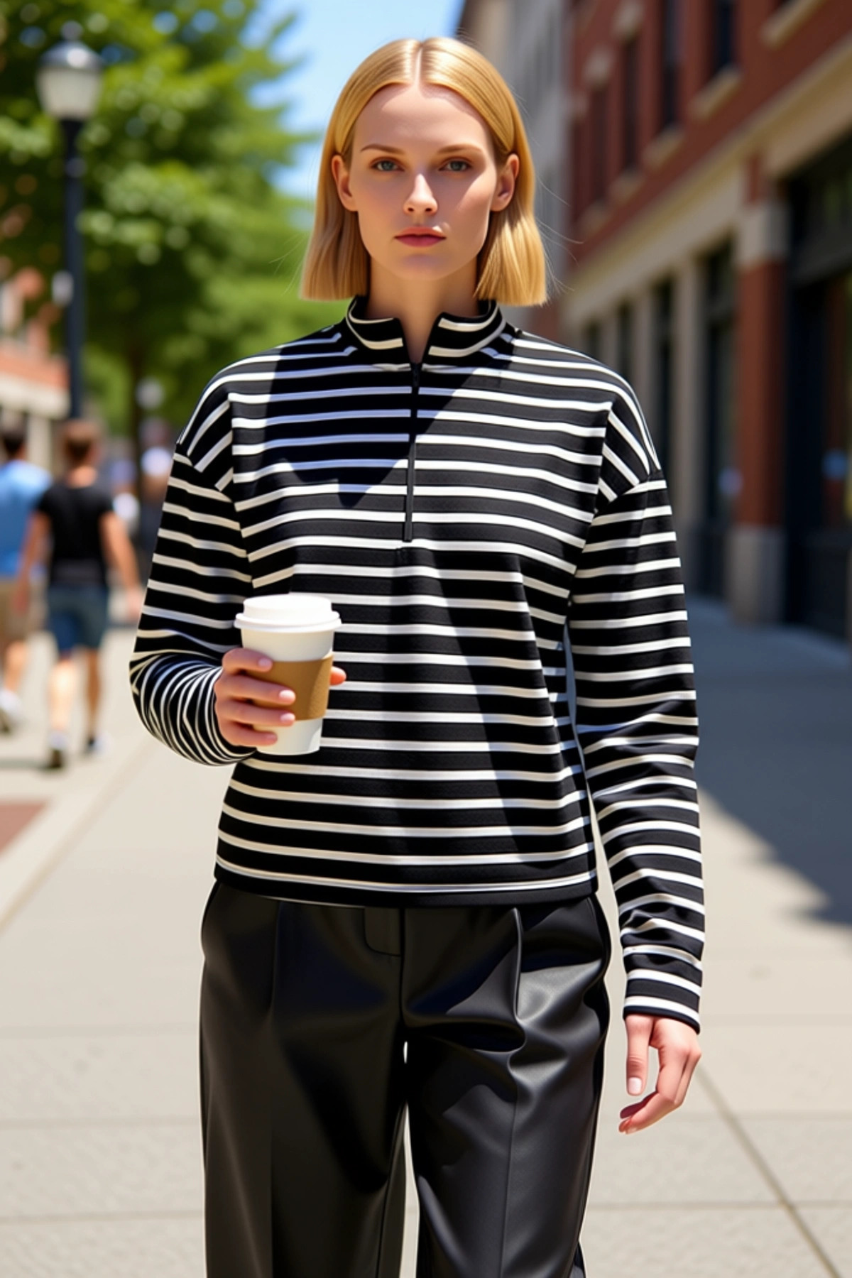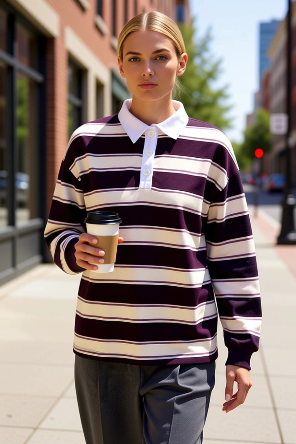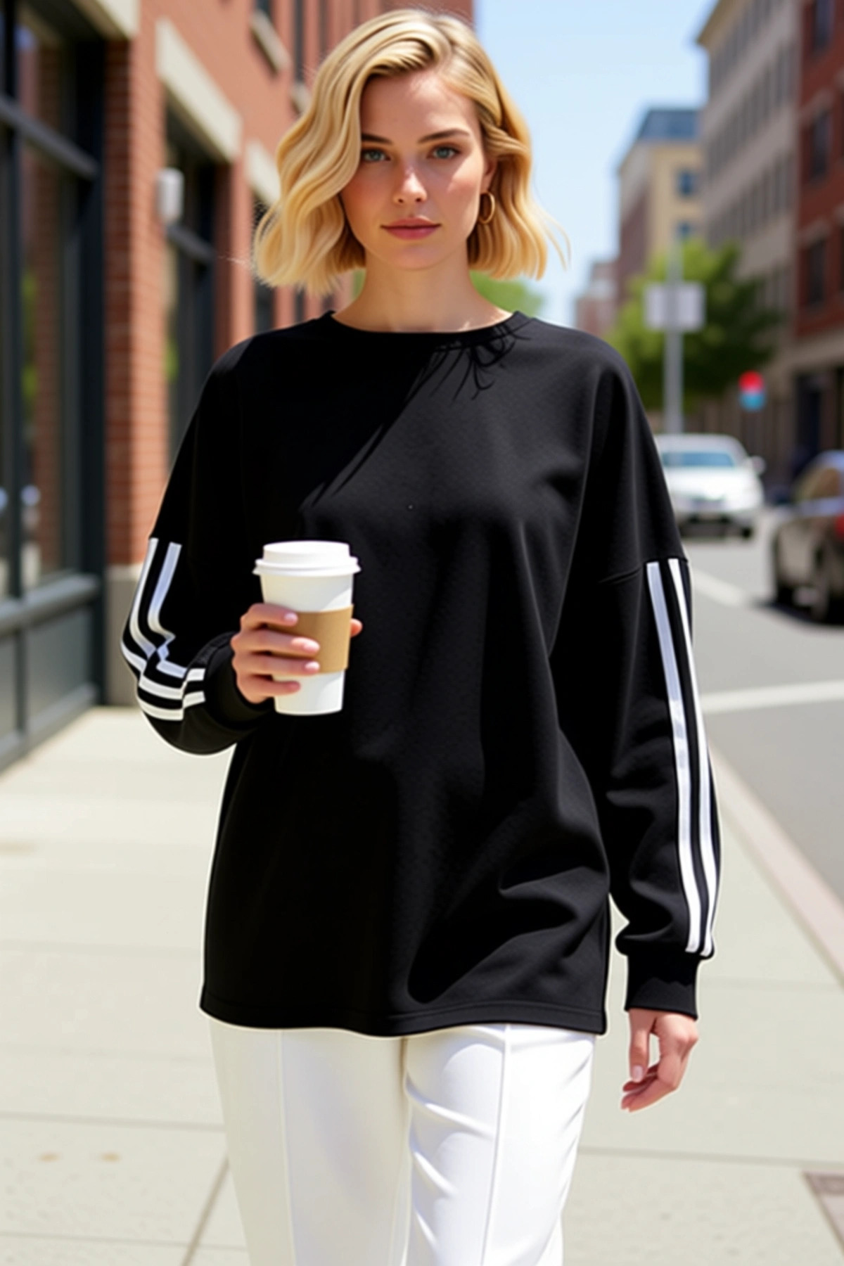 Kadın Dik Yaka Düşük Kol Çizgili İnce Örme Geniş Kalıp Sweatshirt Fonksiyonel Dayanıklı Şık