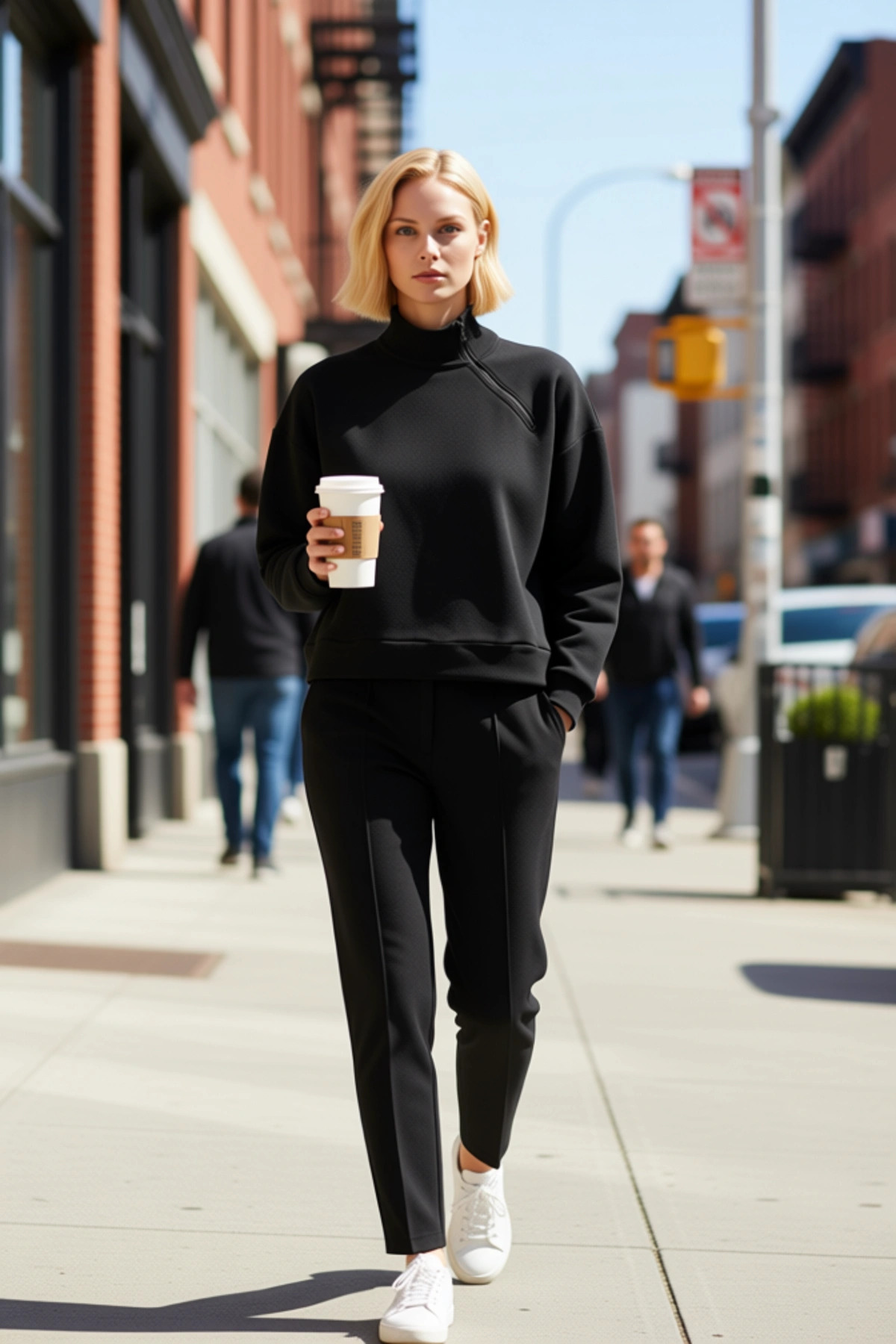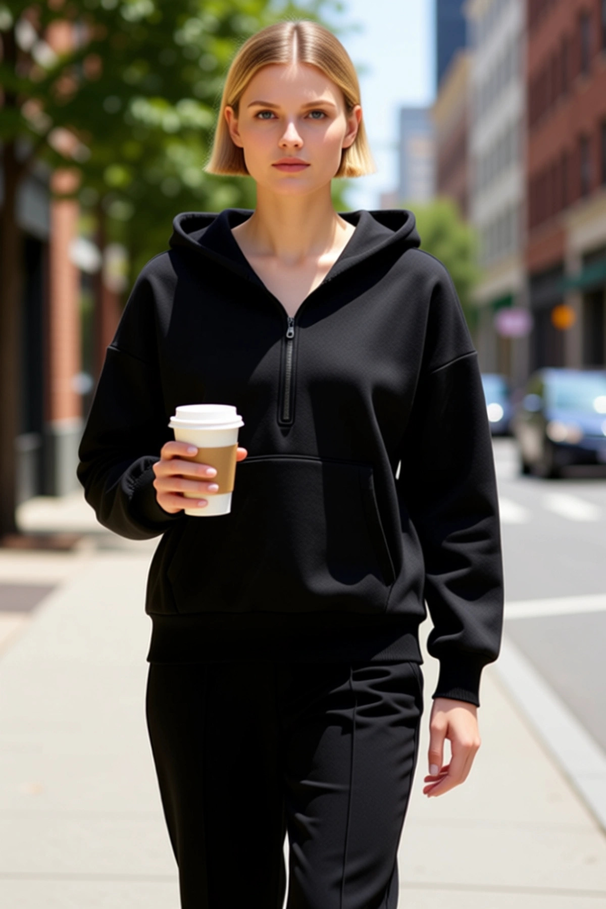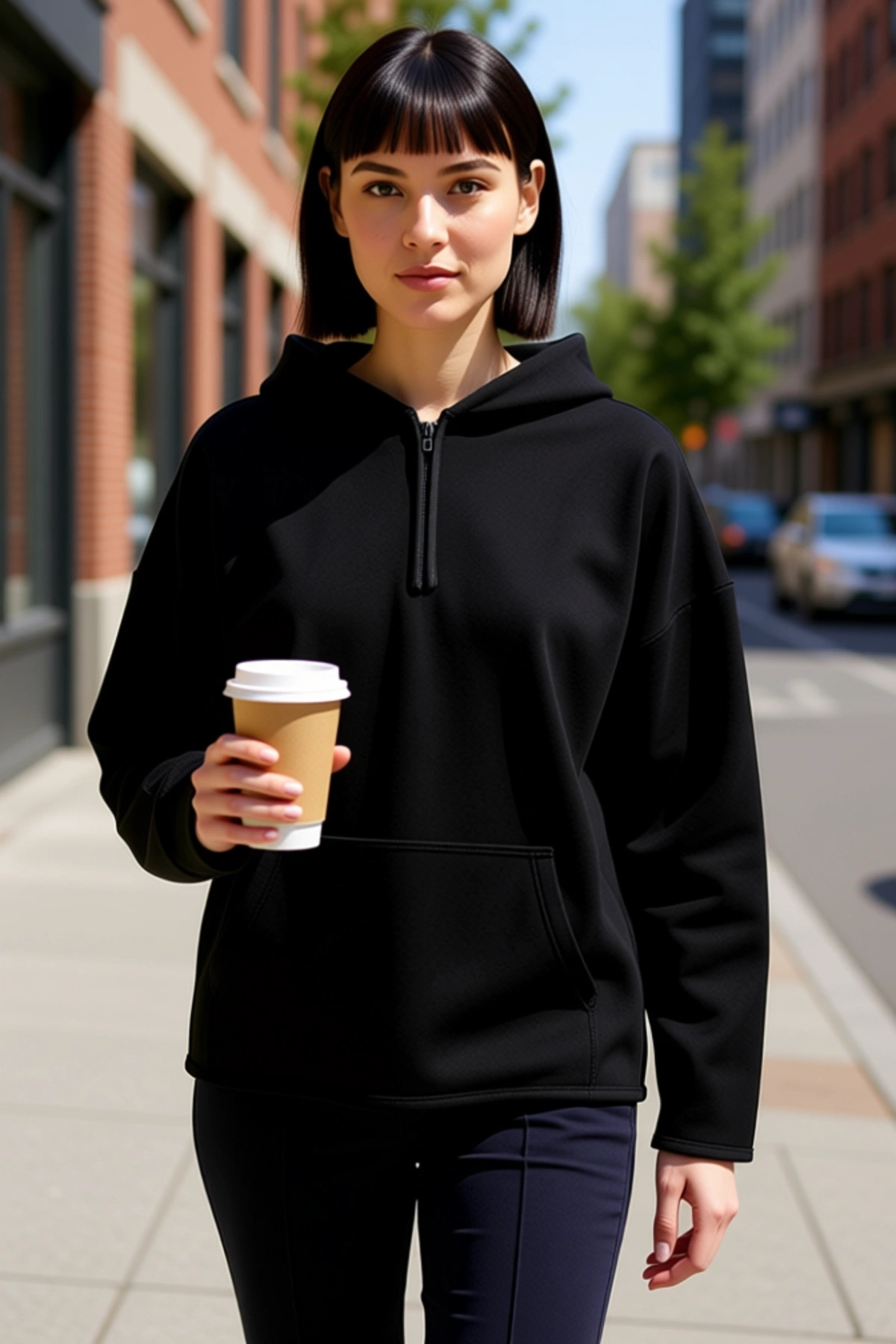 Kadın Kapüşonlu Düşük Kol Yarım Pat Fermuarlı Örme Sweatshirt Fonksiyonel Dayanıklı Modern