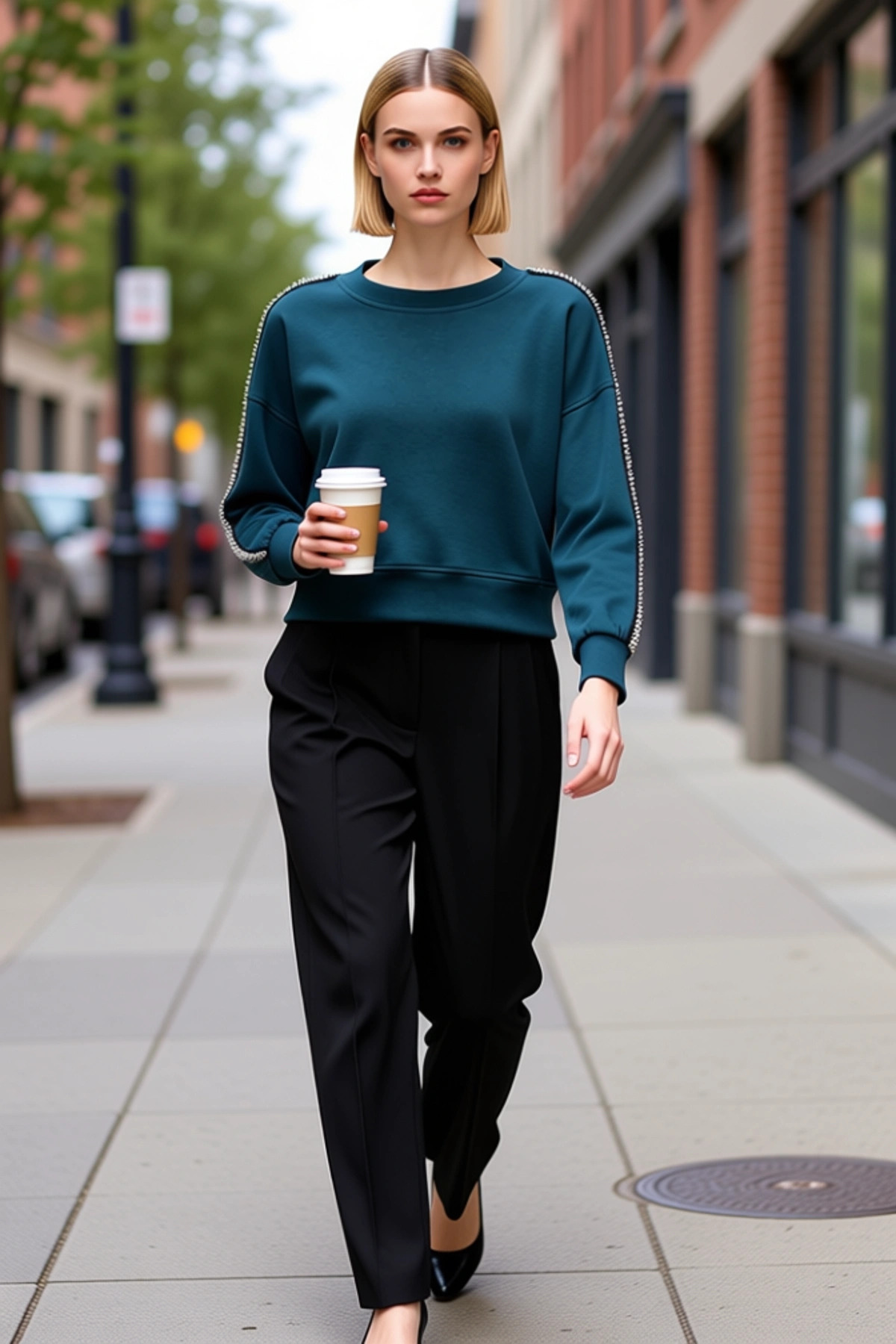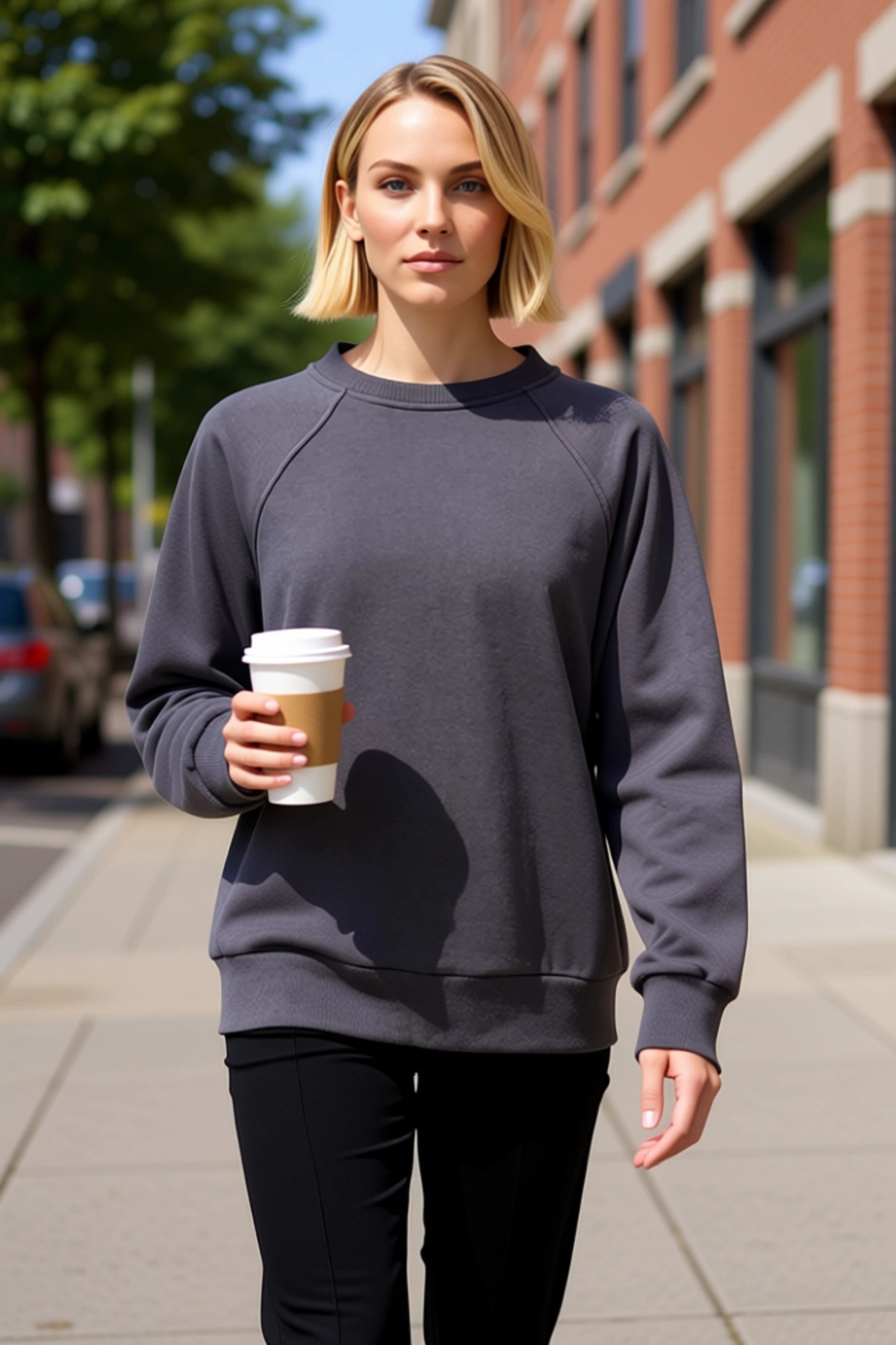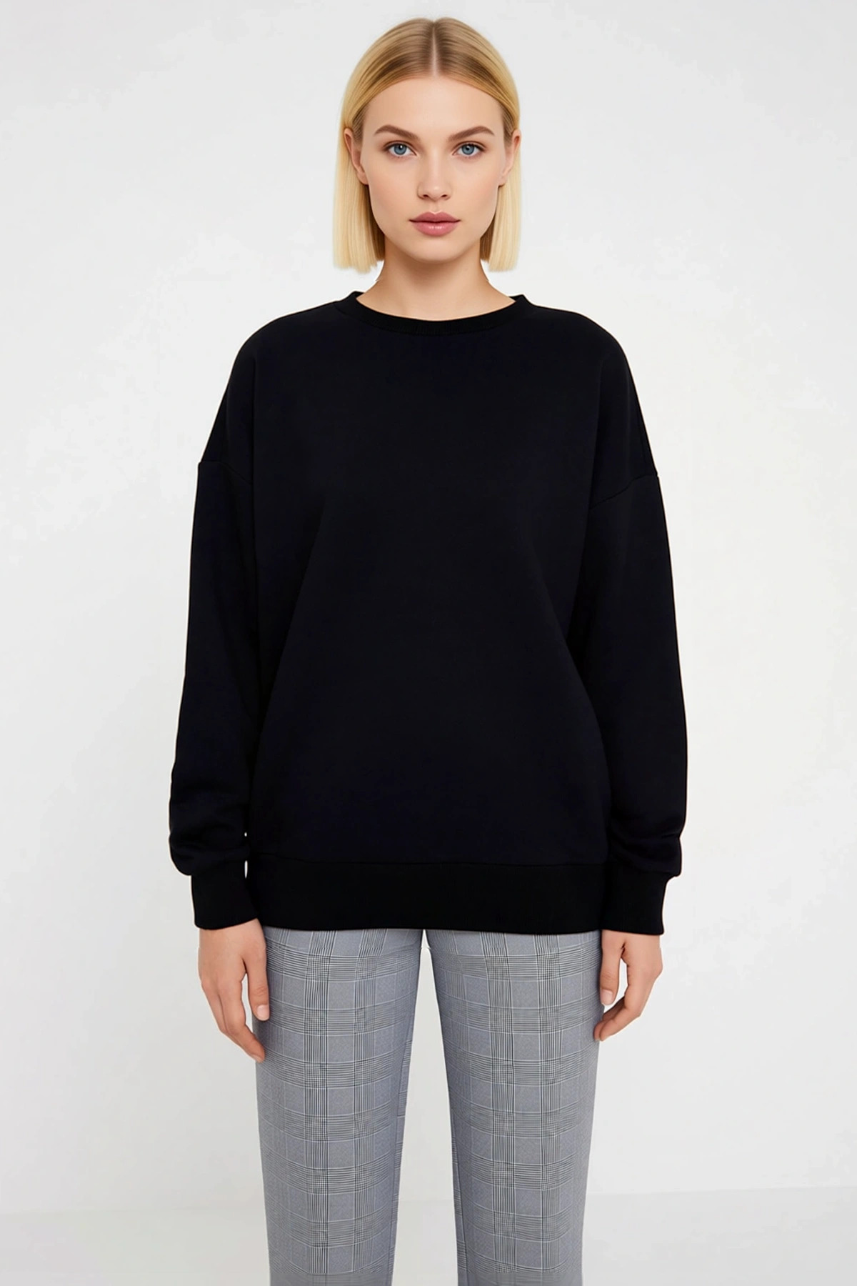 Kadın Bisiklet Yaka Reglan Kol Relaxed Kalıp Örme Sweatshirt Fonksiyonel Dayanıklı Estetik