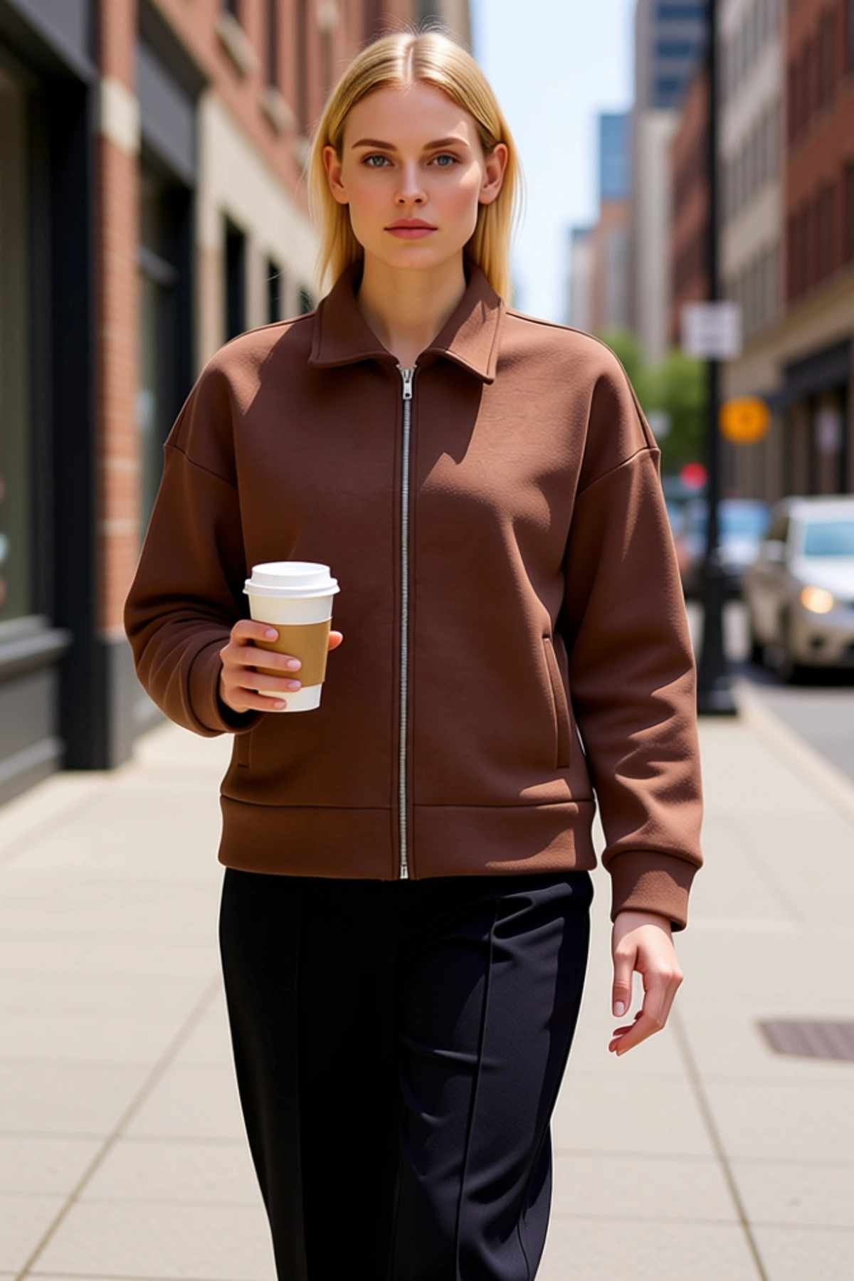 Kadın Dik Yaka Tam Fermuarlı Standart Kol Örme Sweatshirt Fonksiyonel Dayanıklı Kaliteli Şık