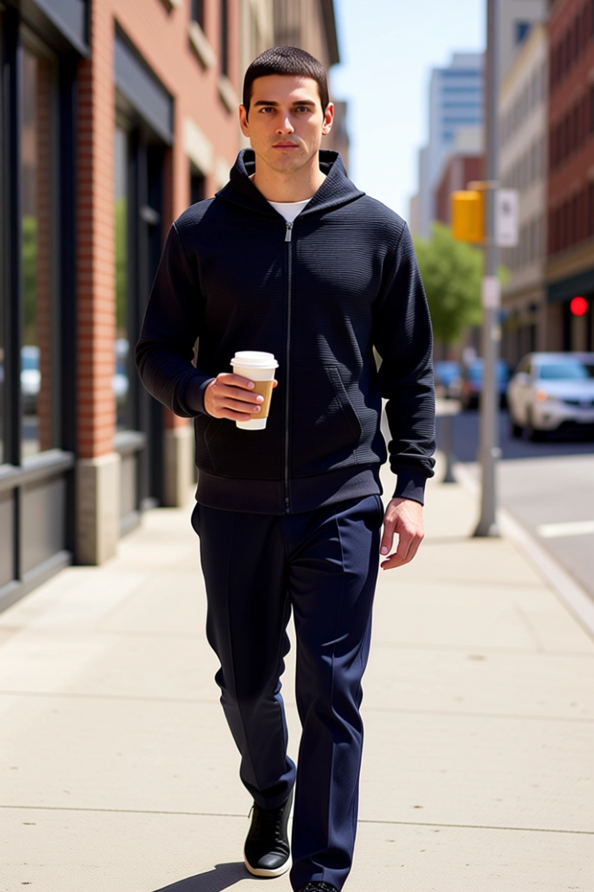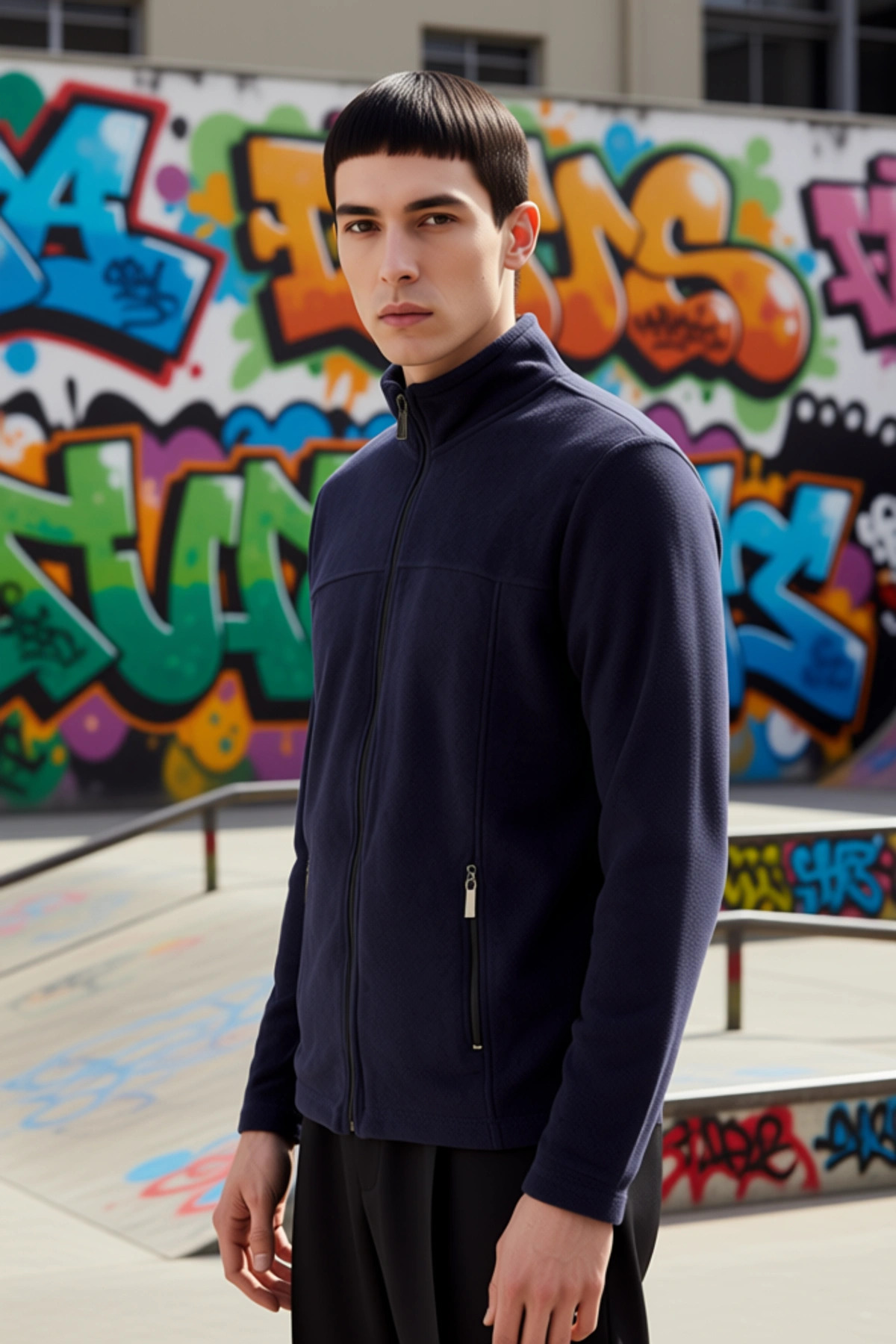 Erkek Bisiklet Yaka Standart Kol Fermuarlı Dokulu Sweatshirt Fonksiyonel Dayanıklı Estetik