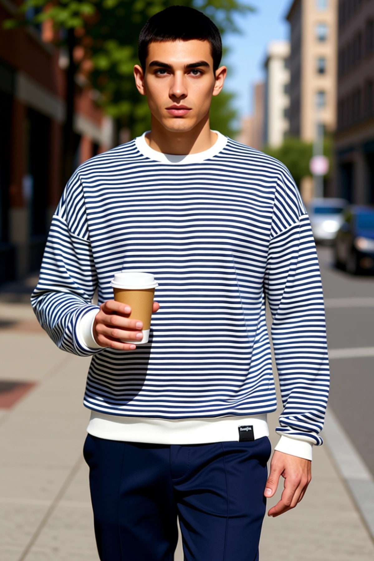 Erkek Bisiklet Yaka Standart Kol Çizgili Oversize Sweatshirt Fonksiyonel Dayanıklı Estetik