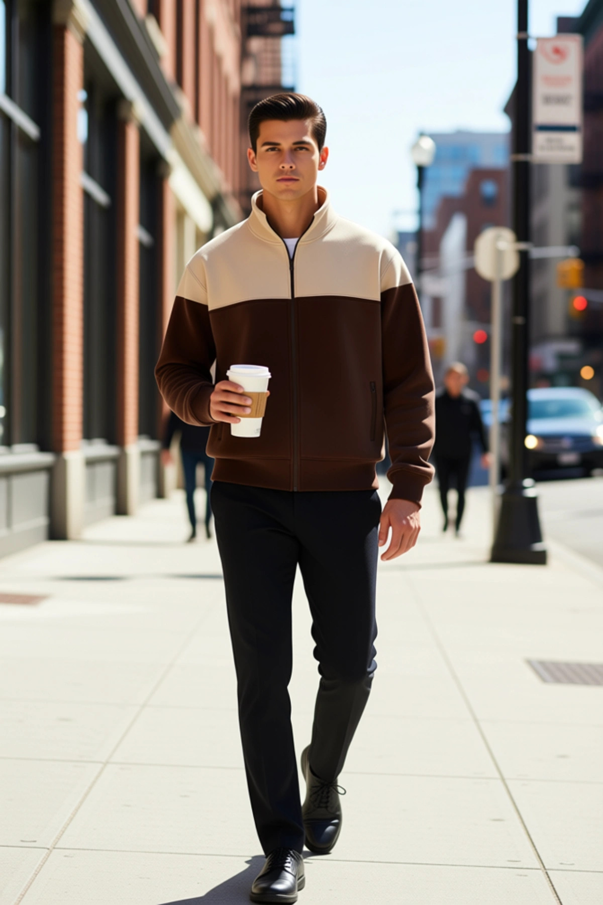 Erkek Dik Yaka Standart Kol Fermuarlı Renk Bloklu Sweatshirt Fonksiyonel Dayanıklı Estetik