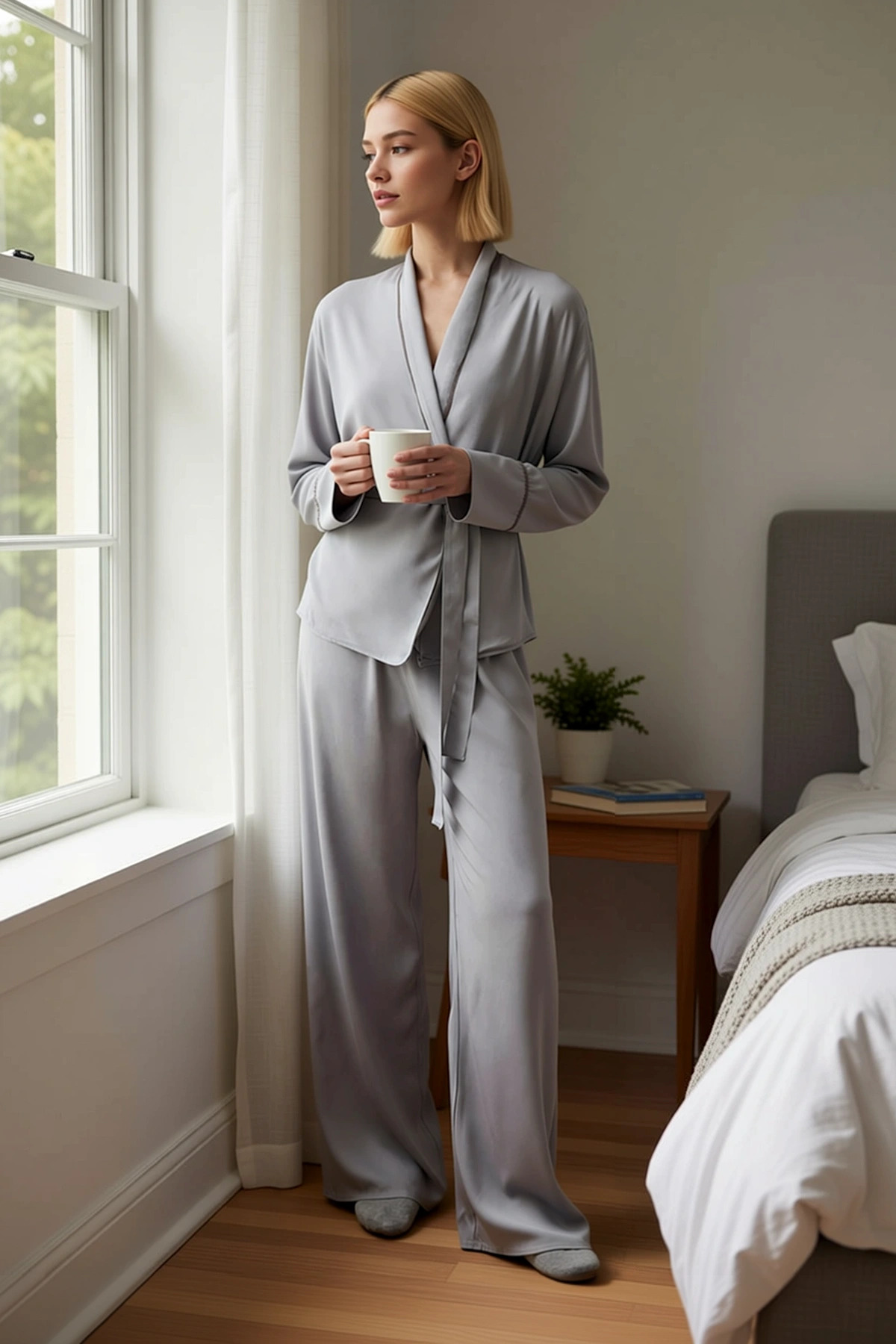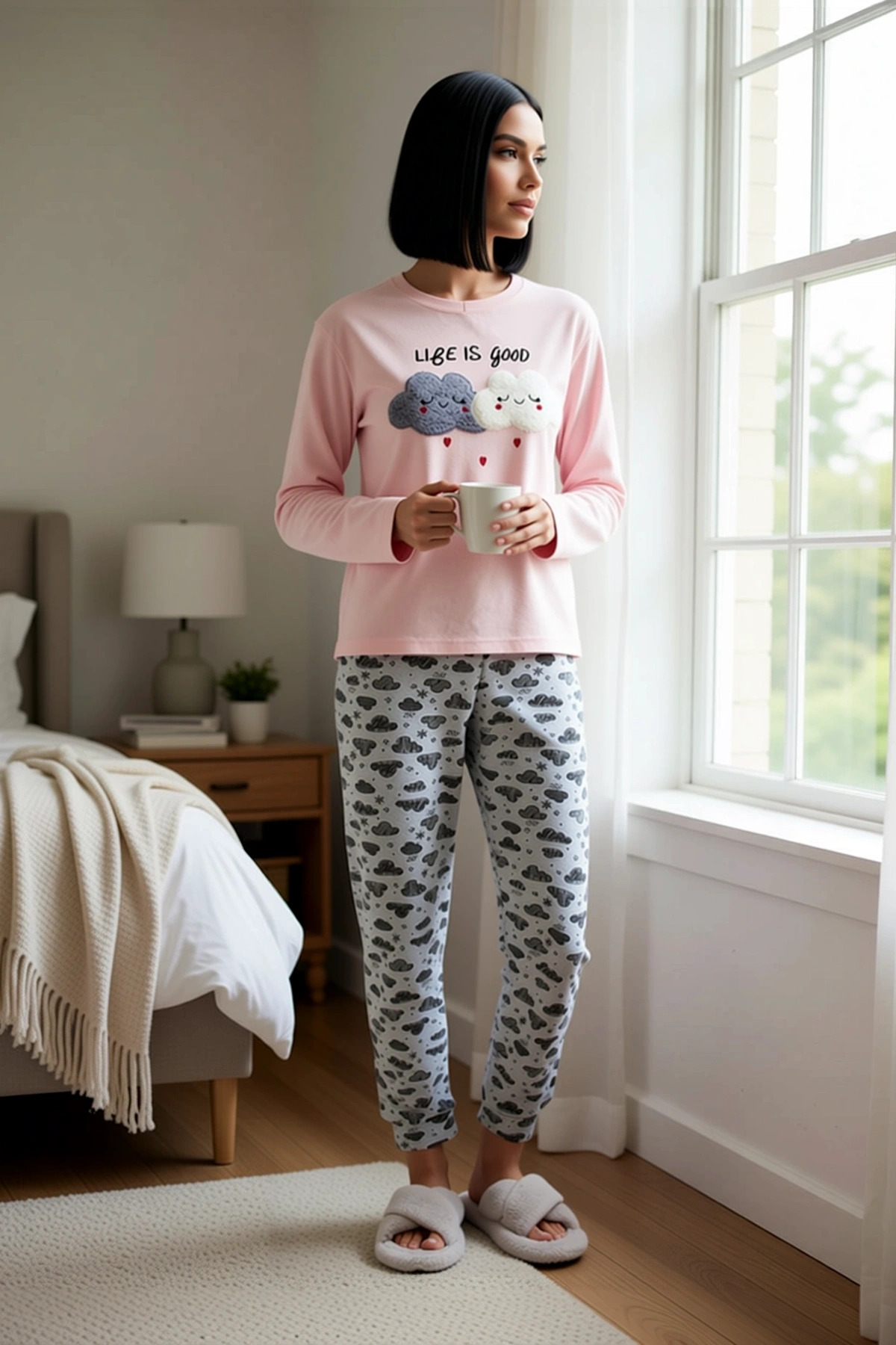 Kadın V Yaka Uzun Kol Regular Kalıp Wellsoft Pijama Takımı Fonksiyonel Dayanıklı Kaliteli Şık