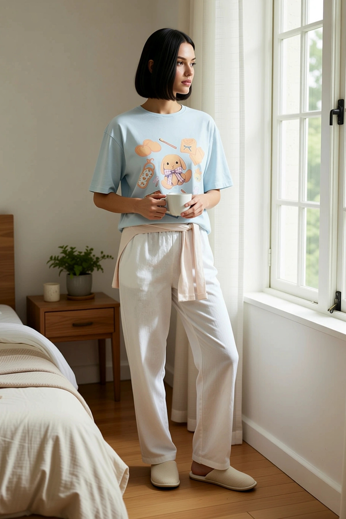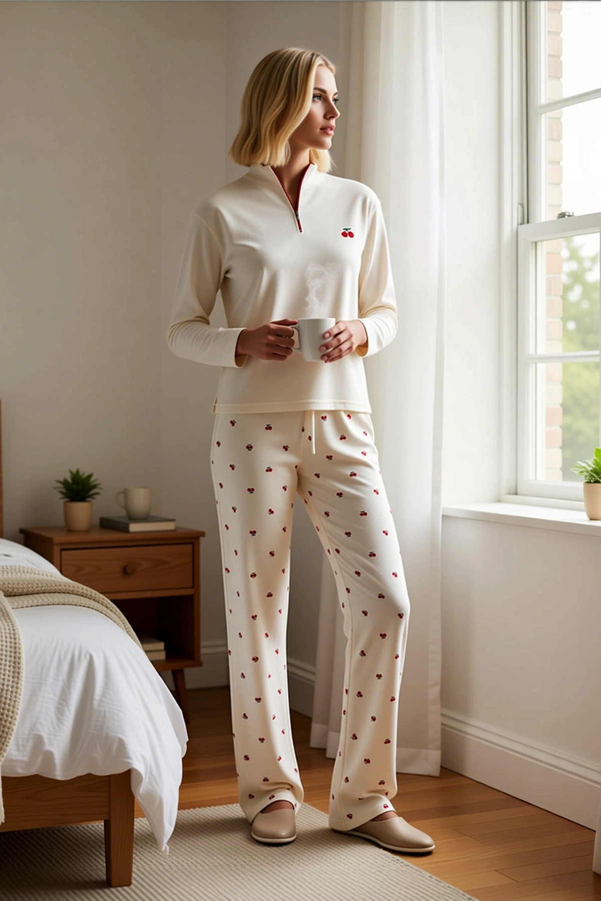 Kadın Bisiklet Yaka Standart Kol Regular Kalıp Pijama Takımı Fonksiyonel Modern 0 Pamuk