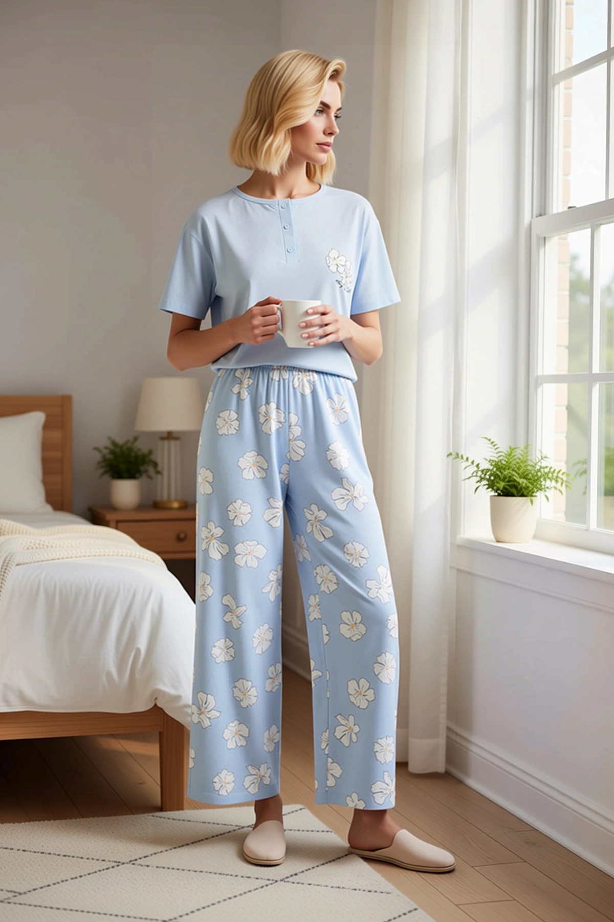 Kadın Havuz Yaka Kısa Kol Regular Kalıp Pijama Takımı Fonksiyonel Dayanıklı Şık 0 Pamuk
