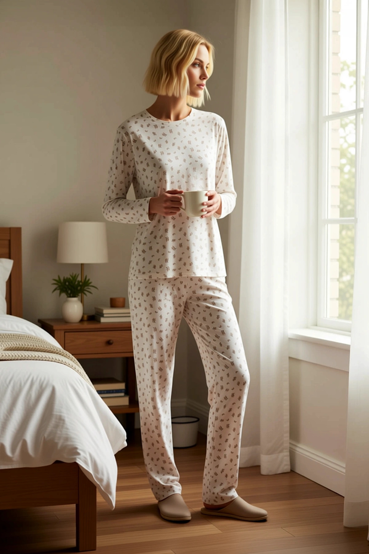 Kadın Bisiklet Yaka Standart Kol Regular Kalıp Örme Pijama Takımı Fonksiyonel Dayanıklı Şık