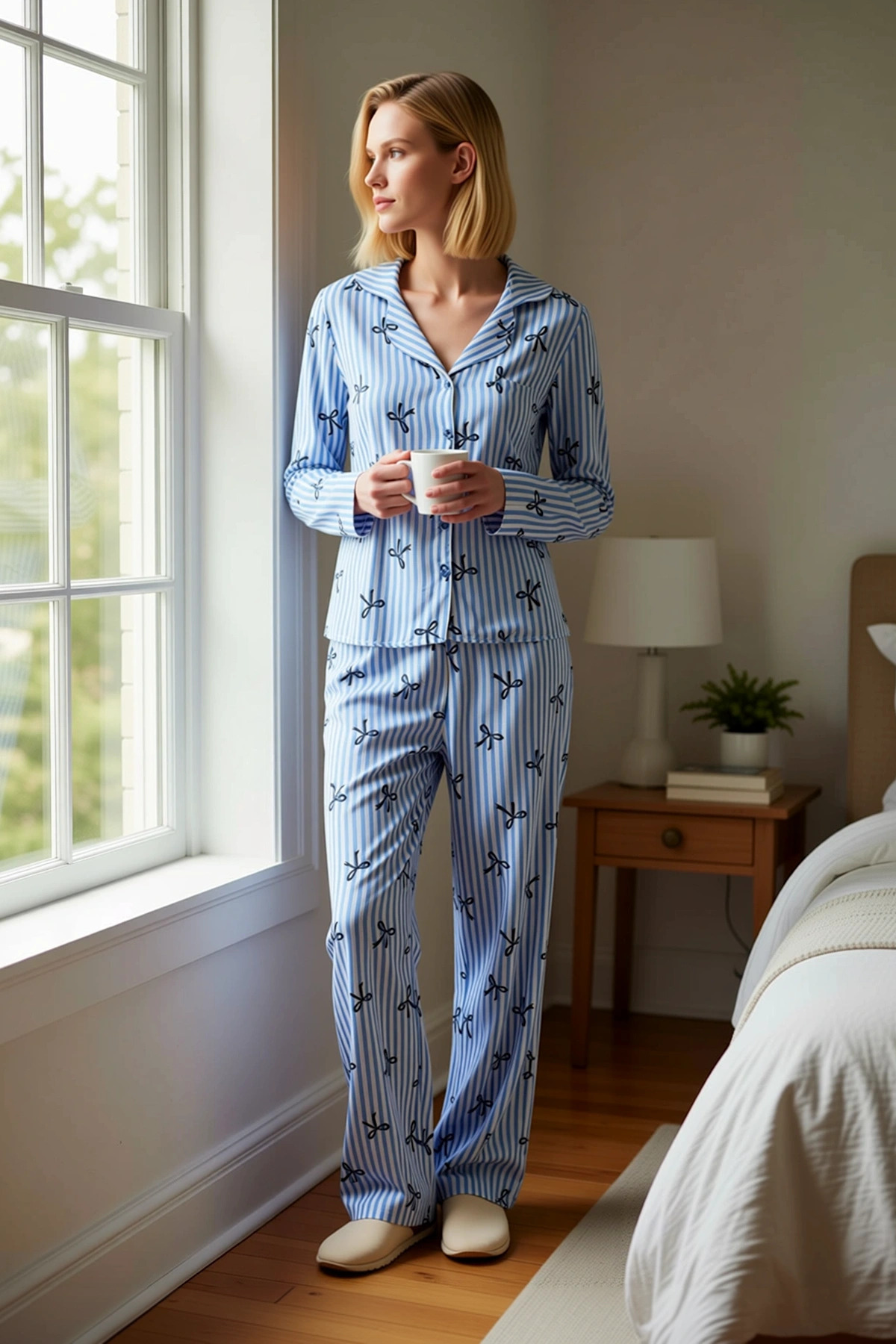Kadın Gömlek Yaka Standart Kol Regular Kalıp Dokuma Pijama Takımı Fonksiyonel Dayanıklı Şık