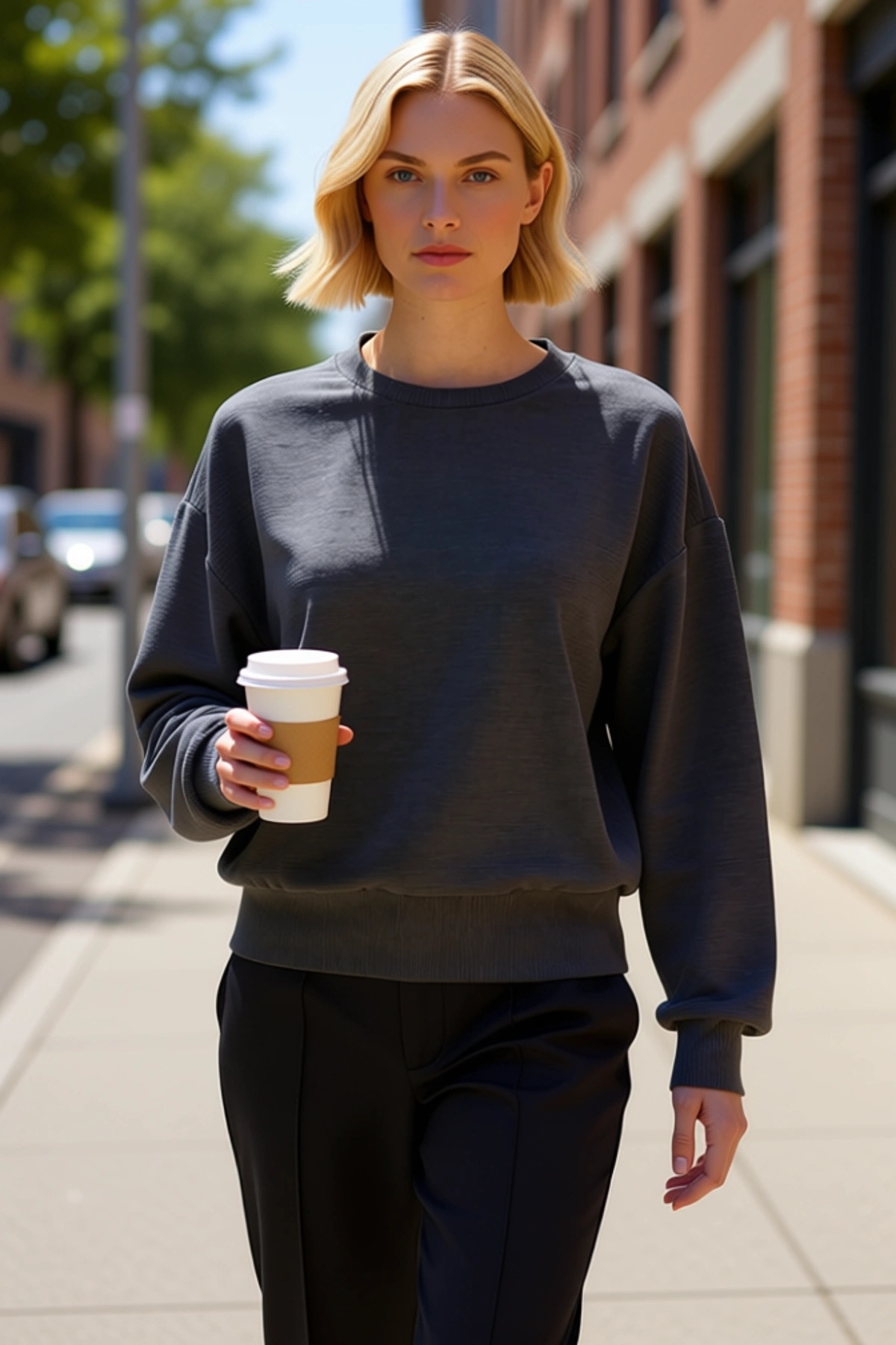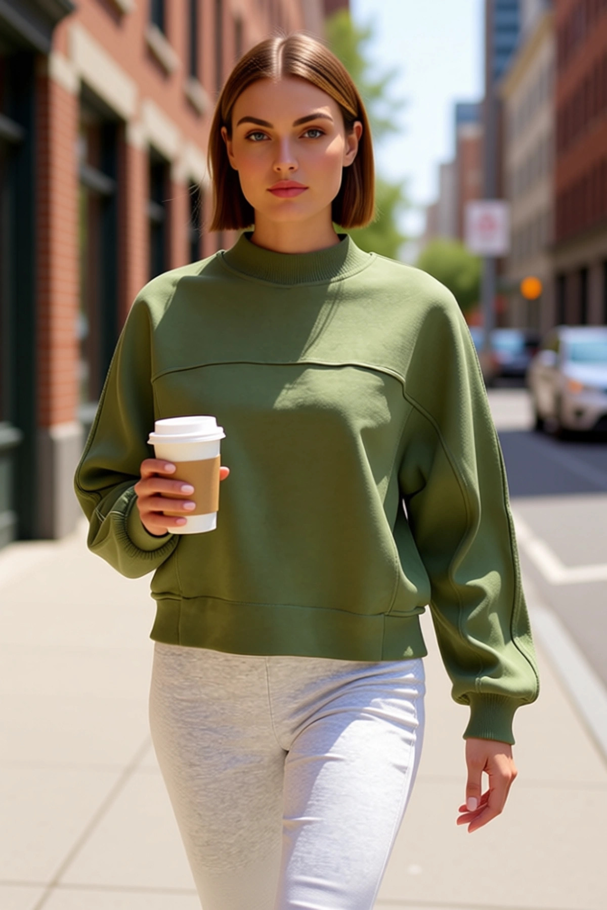 Kadın Bisiklet Yaka Düşük Kol Oversize Kalıp Sweatshirt Fonksiyonel Dayanıklı Kaliteli Şık