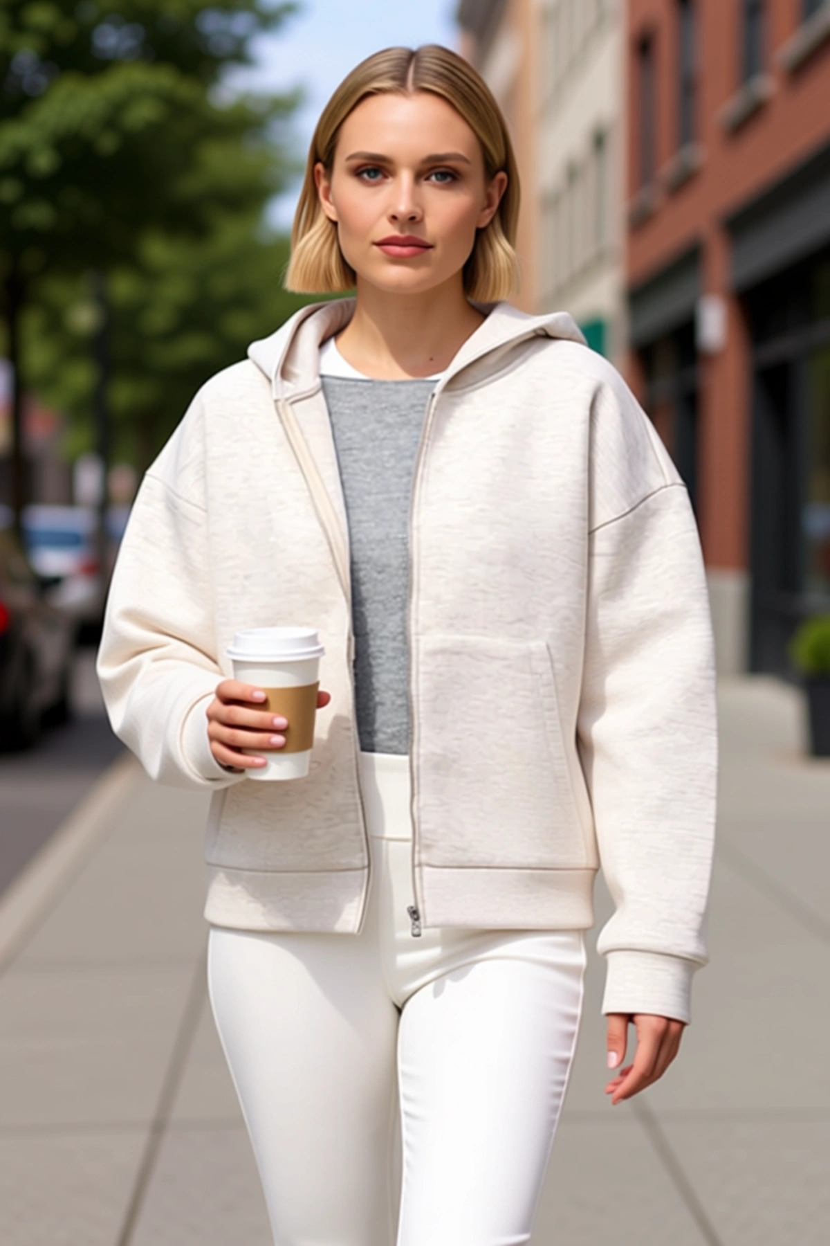 Kadın Kapüşonlu Düşük Kol Fermuarlı Örme Sweatshirt Fonksiyonel Dayanıklı Kaliteli Estetik