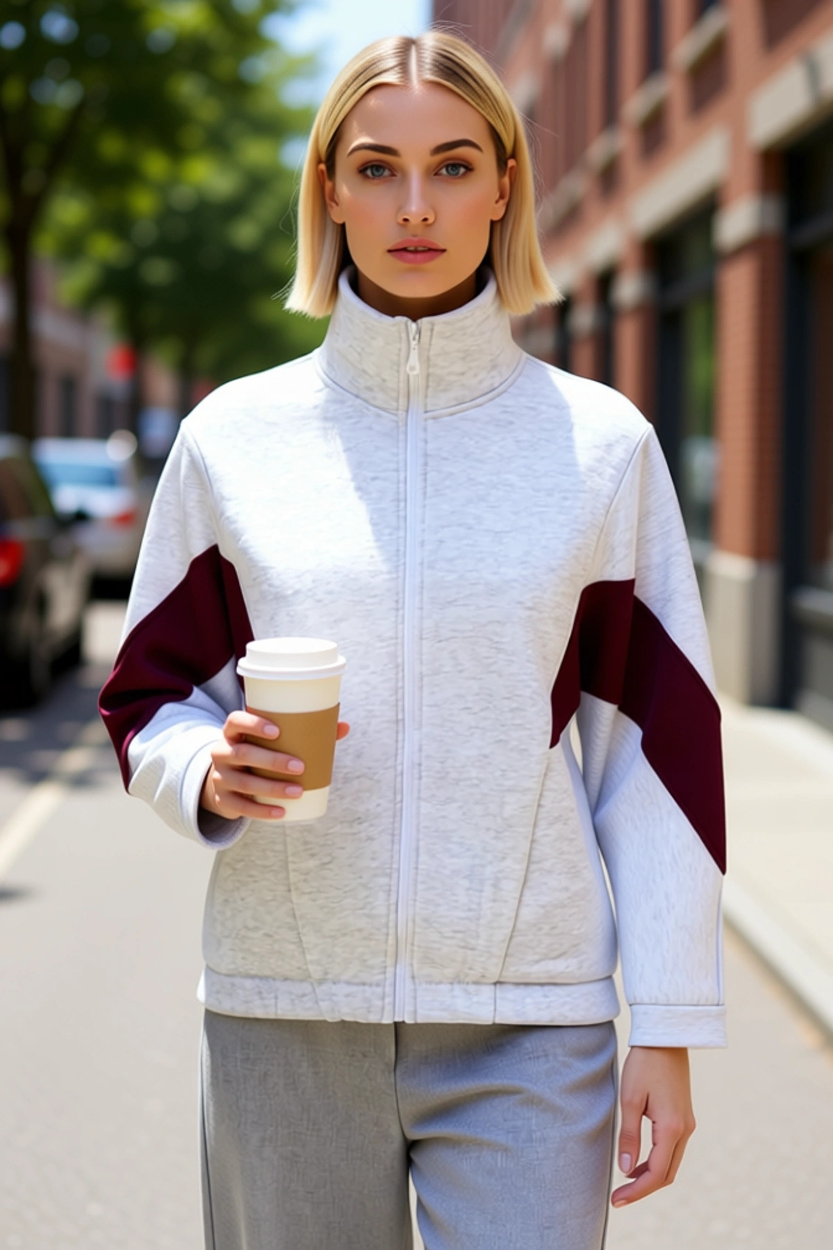 Kadın Dik Yaka Düşük Kol Fermuar Kapamalı Örme Sweatshirt Fonksiyonel Dayanıklı Kaliteli Şık