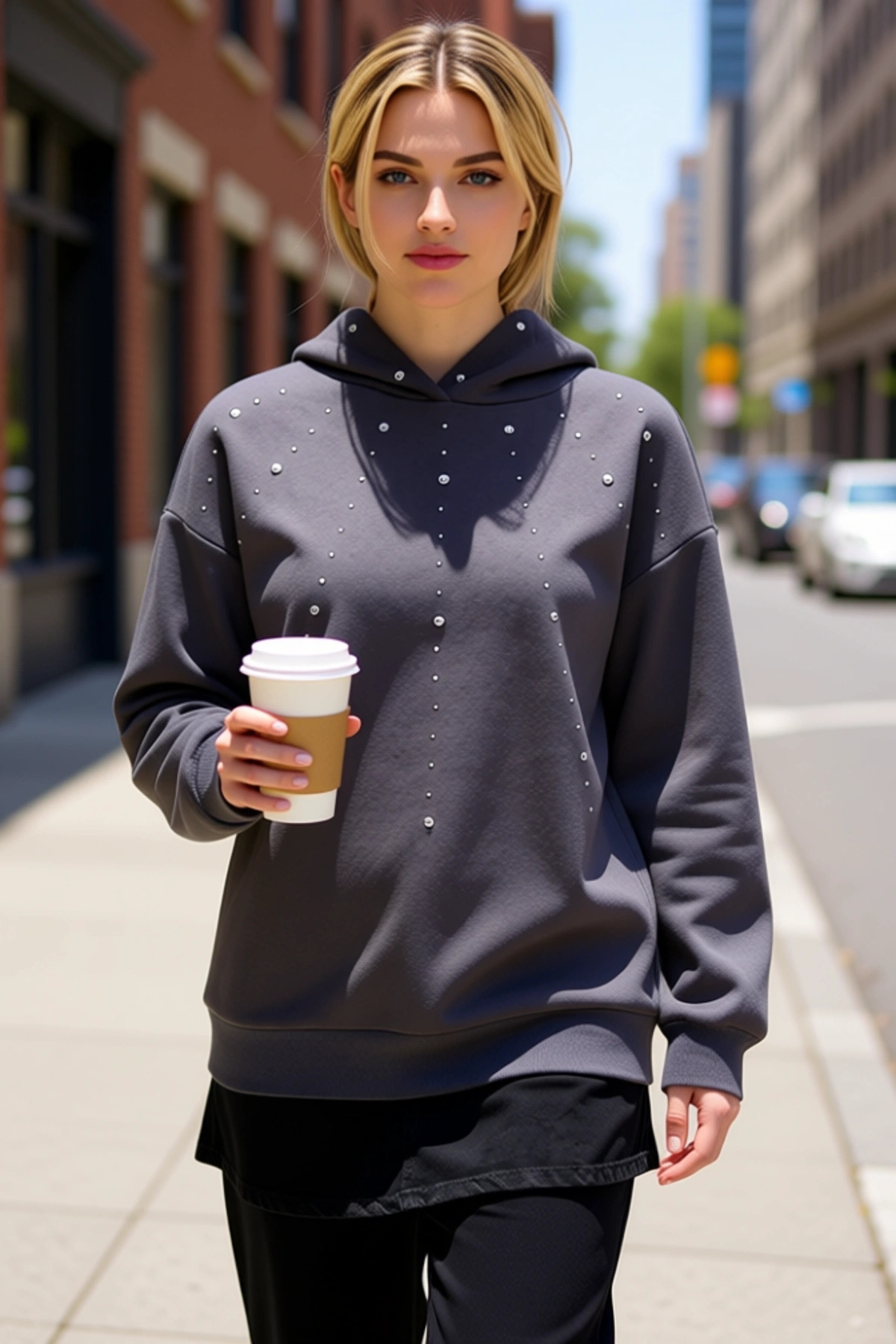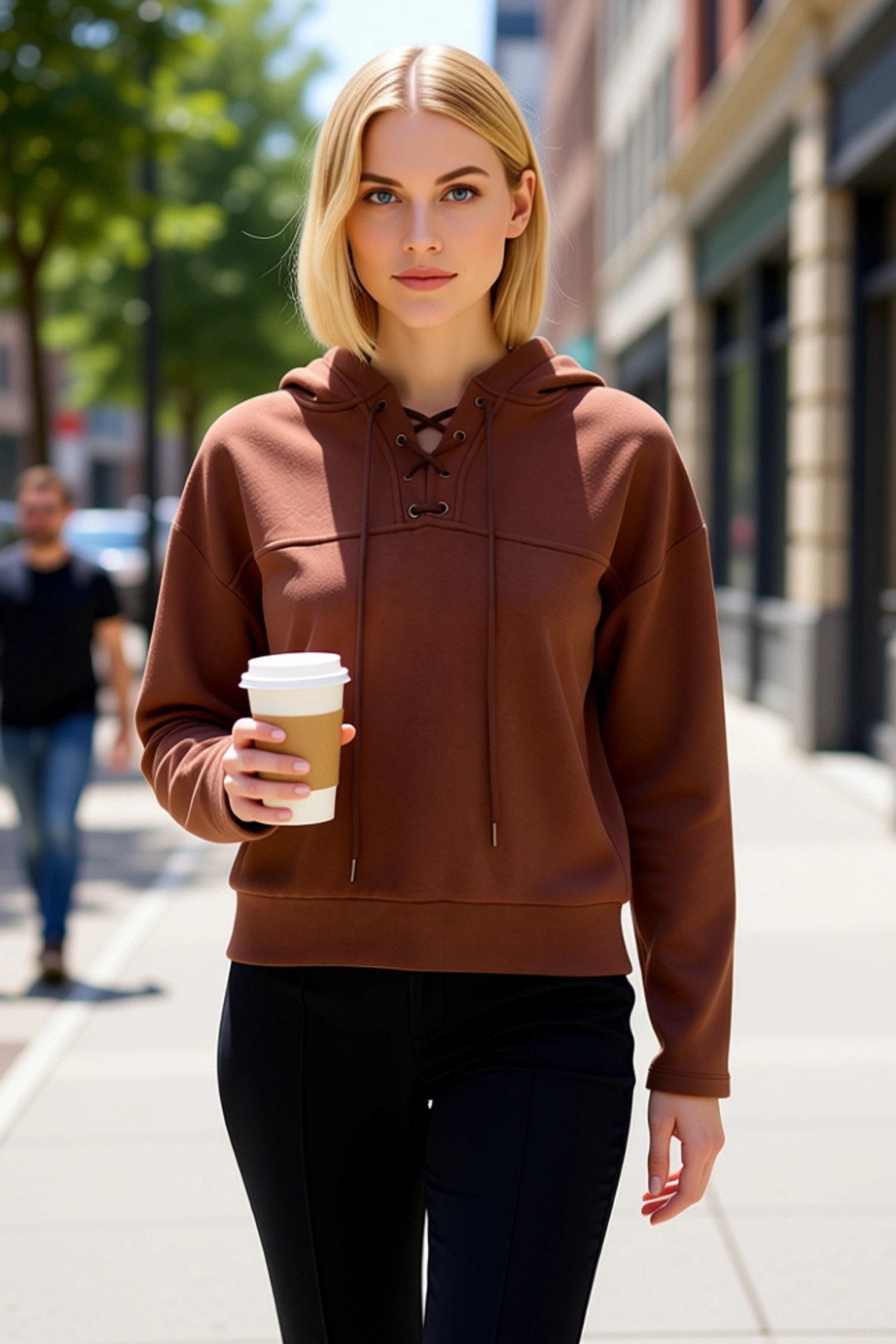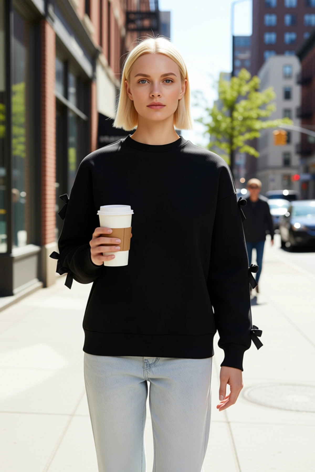 Kadın Kapüşonlu Standart Kol Bağlama Detaylı Örme Sweatshirt Fonksiyonel Dayanıklı Estetik