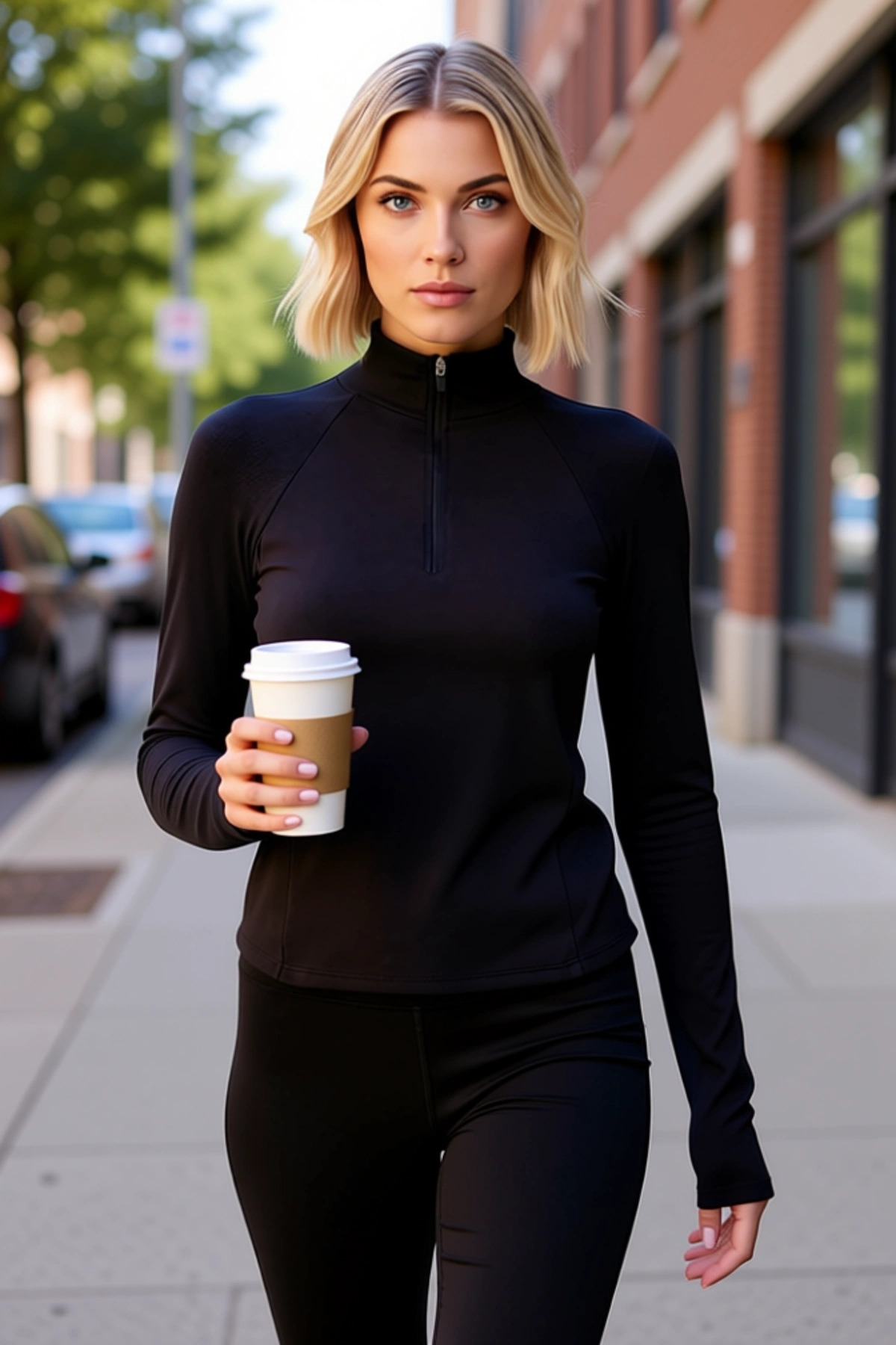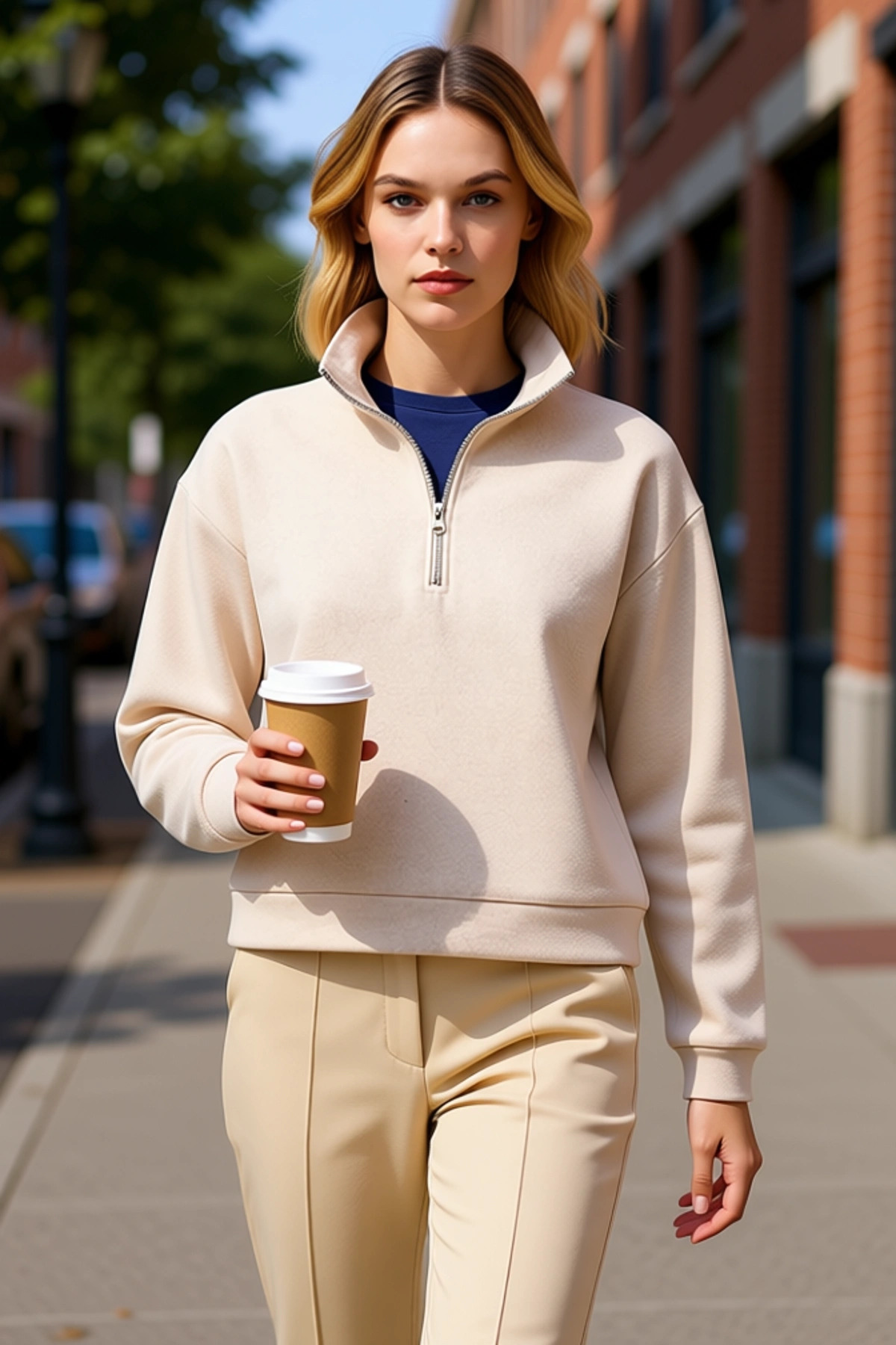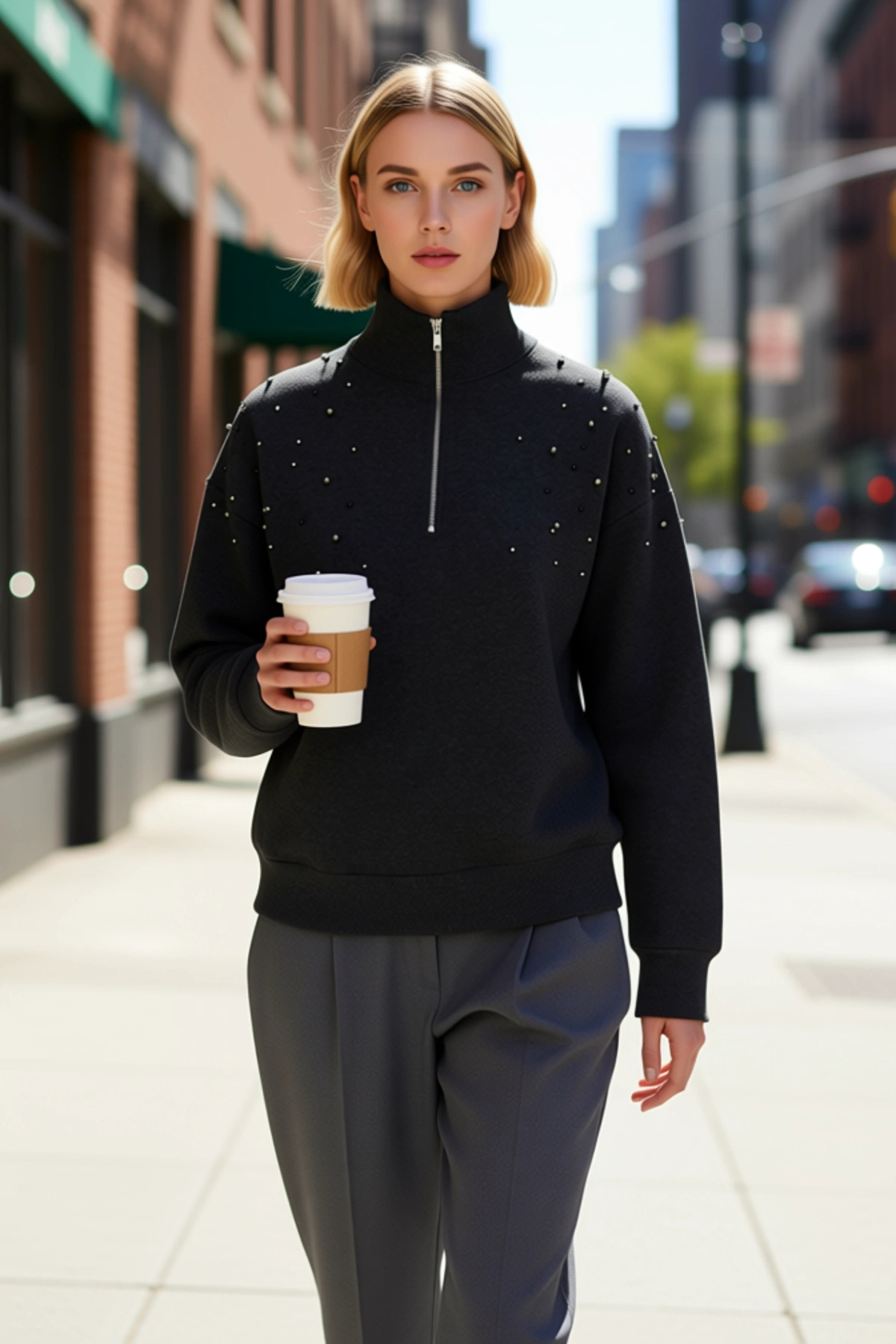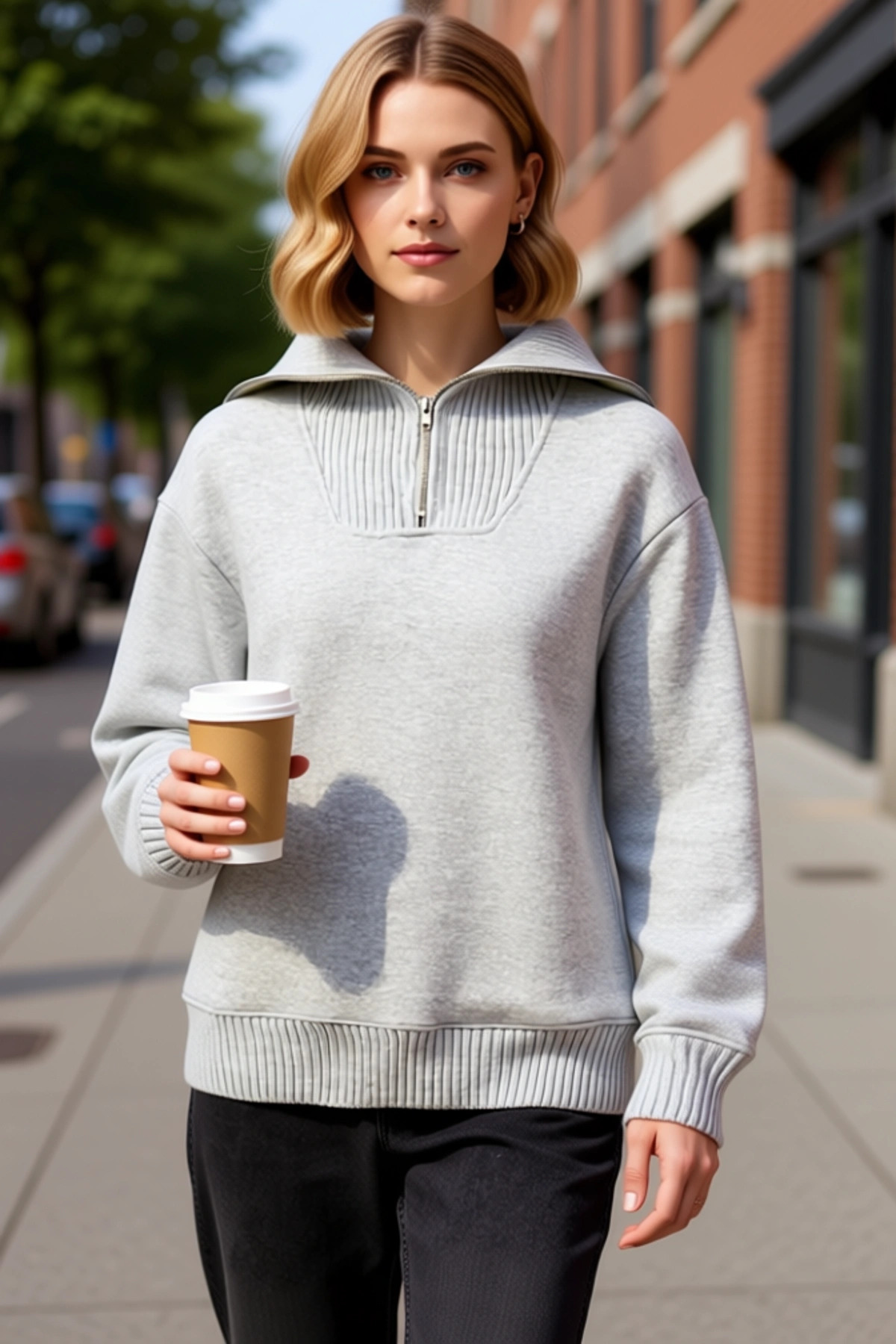 Kadın Dik Yaka Düşük Kol Yarım Pat Fermuarlı Sweatshirt Fonksiyonel Dayanıklı Kaliteli Şık