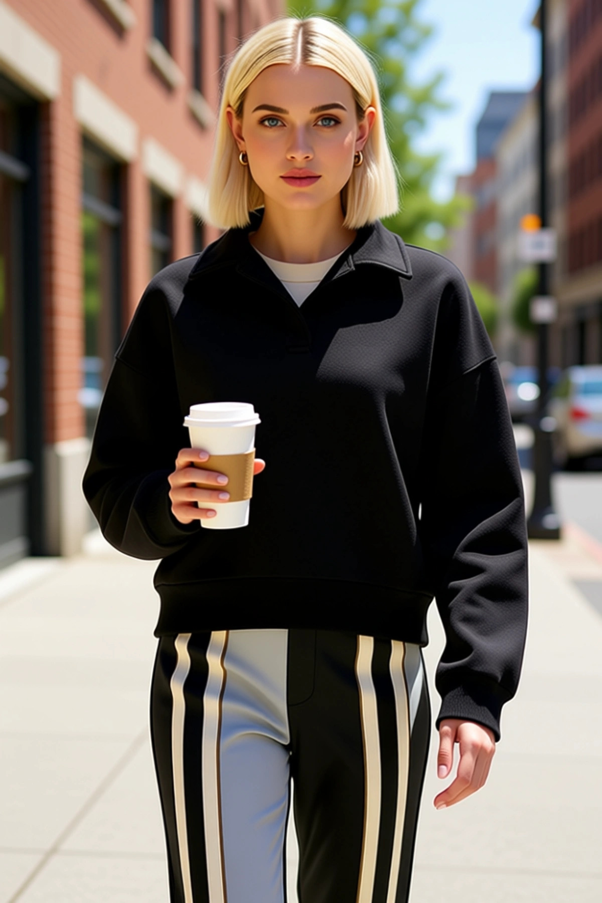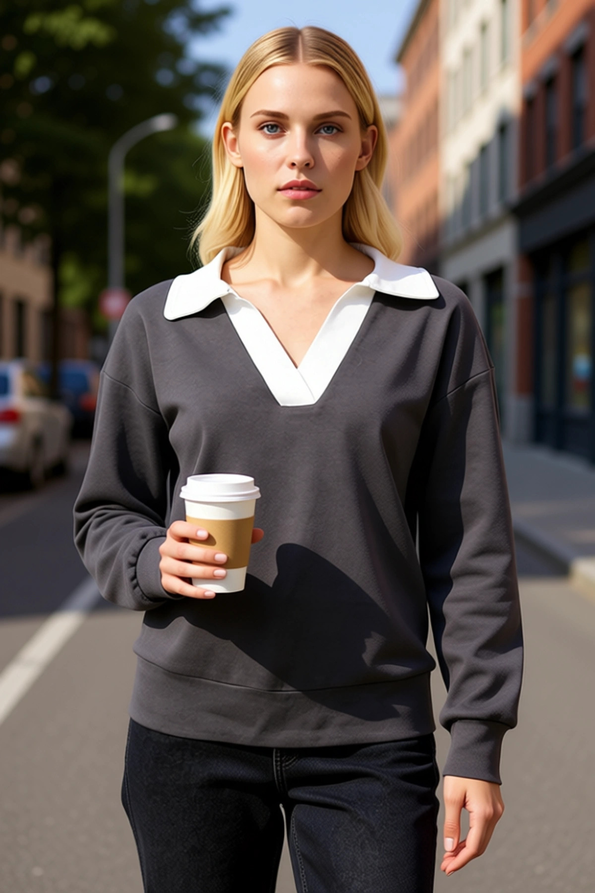 Kadın Polo Yaka Düşük Kol Örme Sweatshirt Fonksiyonel Dayanıklı Kaliteli Konforlu Estetik Şık