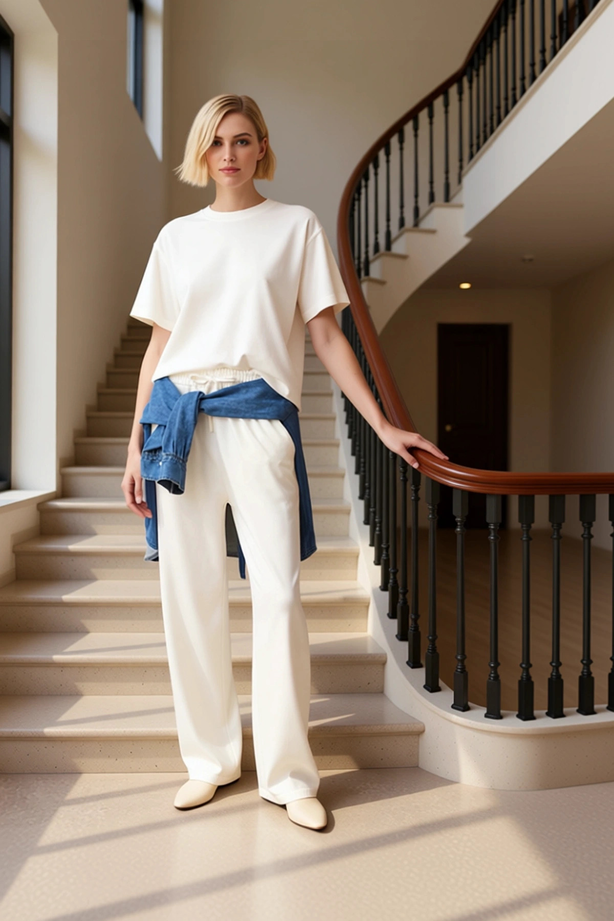 Kadın Alt Üst Oversize Rahat Kesim Dokuma Gömlek Ve Beli Lastikli Geniş Paça Pantolon İkili Takım
