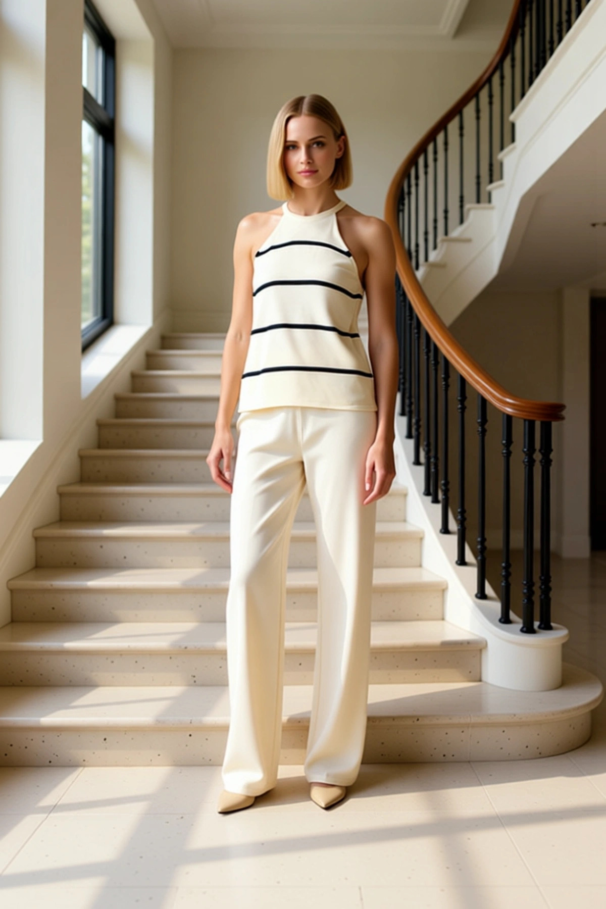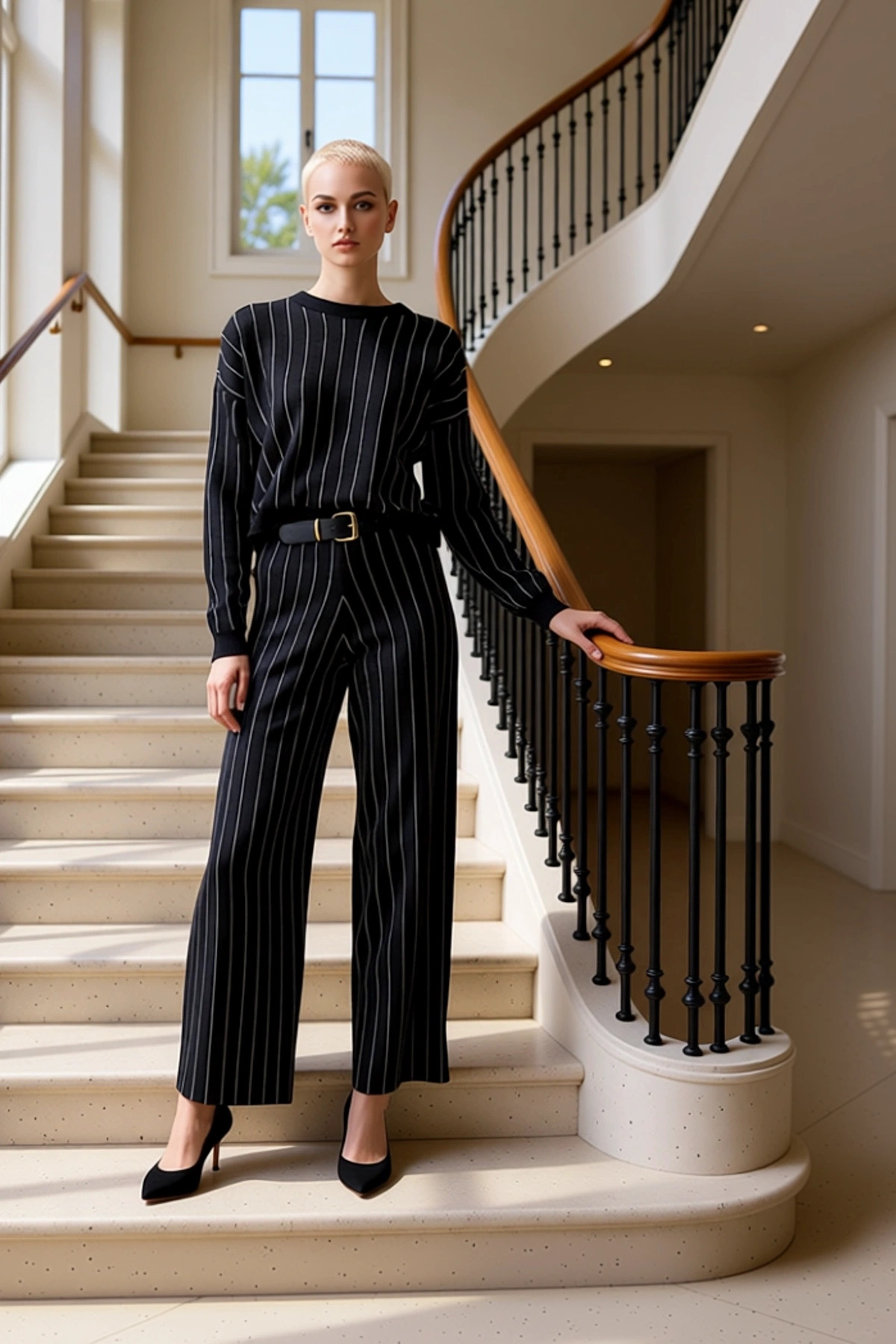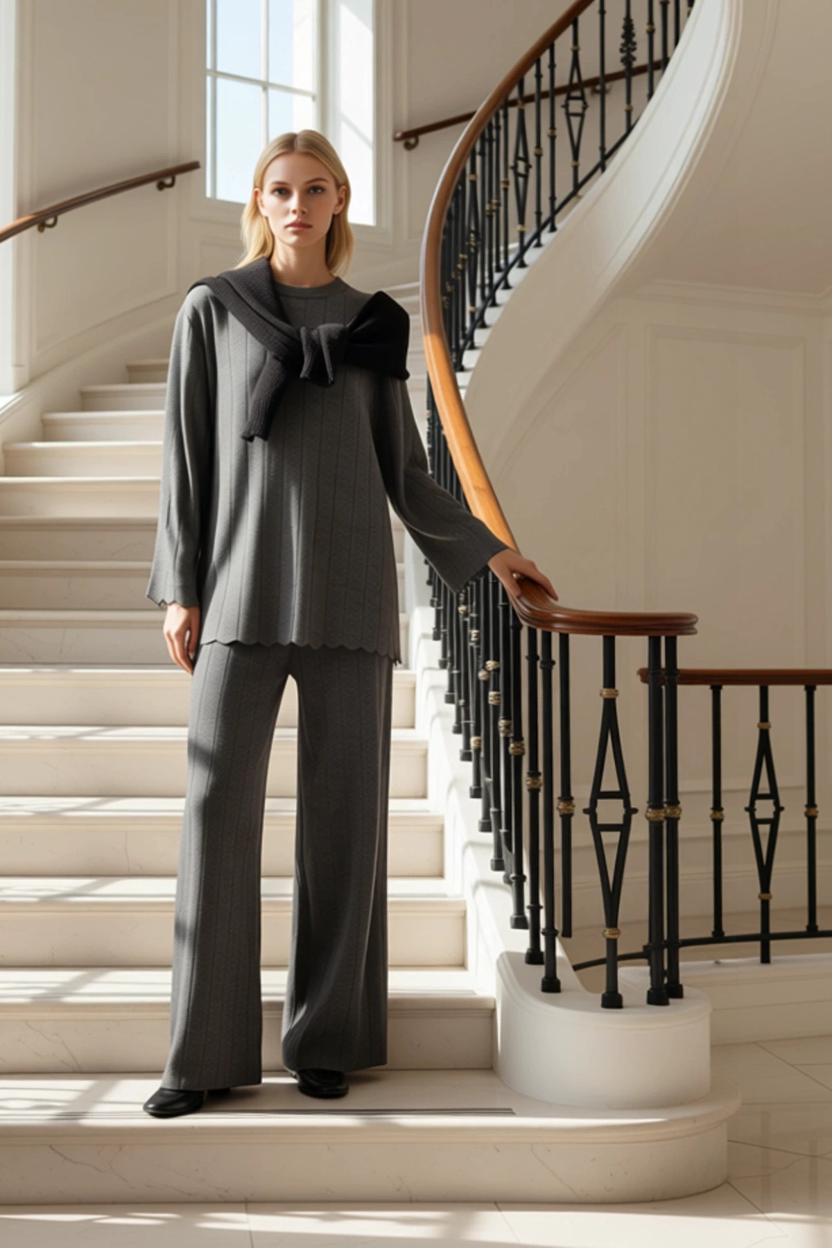 Kadın Alt Üst Triko Çizgili Oversize Kazak Pantolon Takımı Günlük Şıklık Ve Bir Arada Sunuyor Spor
