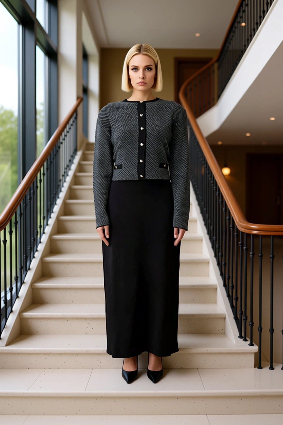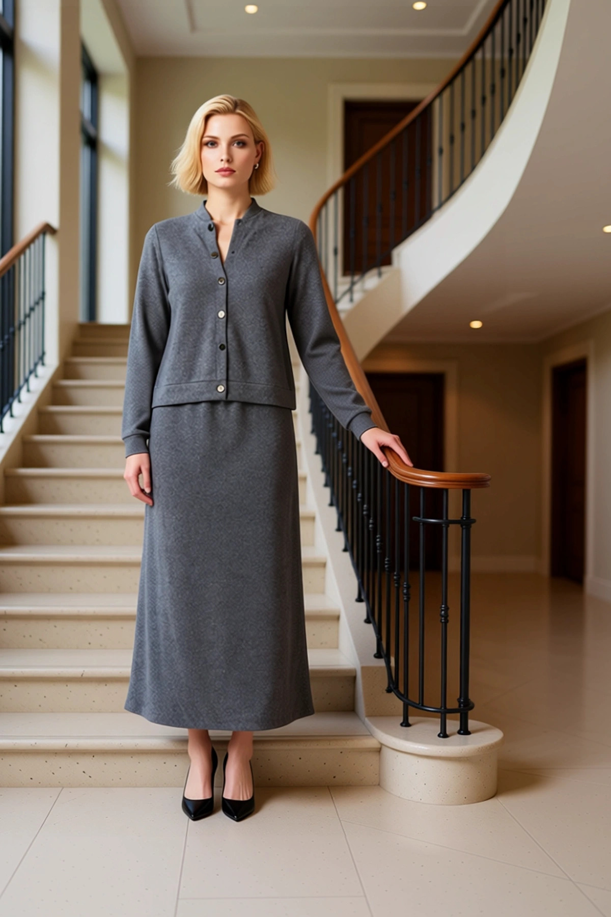 Kadın Alt Üst Selanik Örme Kumaş Uzun Etek Hırka İkili Takım Günlük Konforlu Şıklık Ve Fonksiyonel