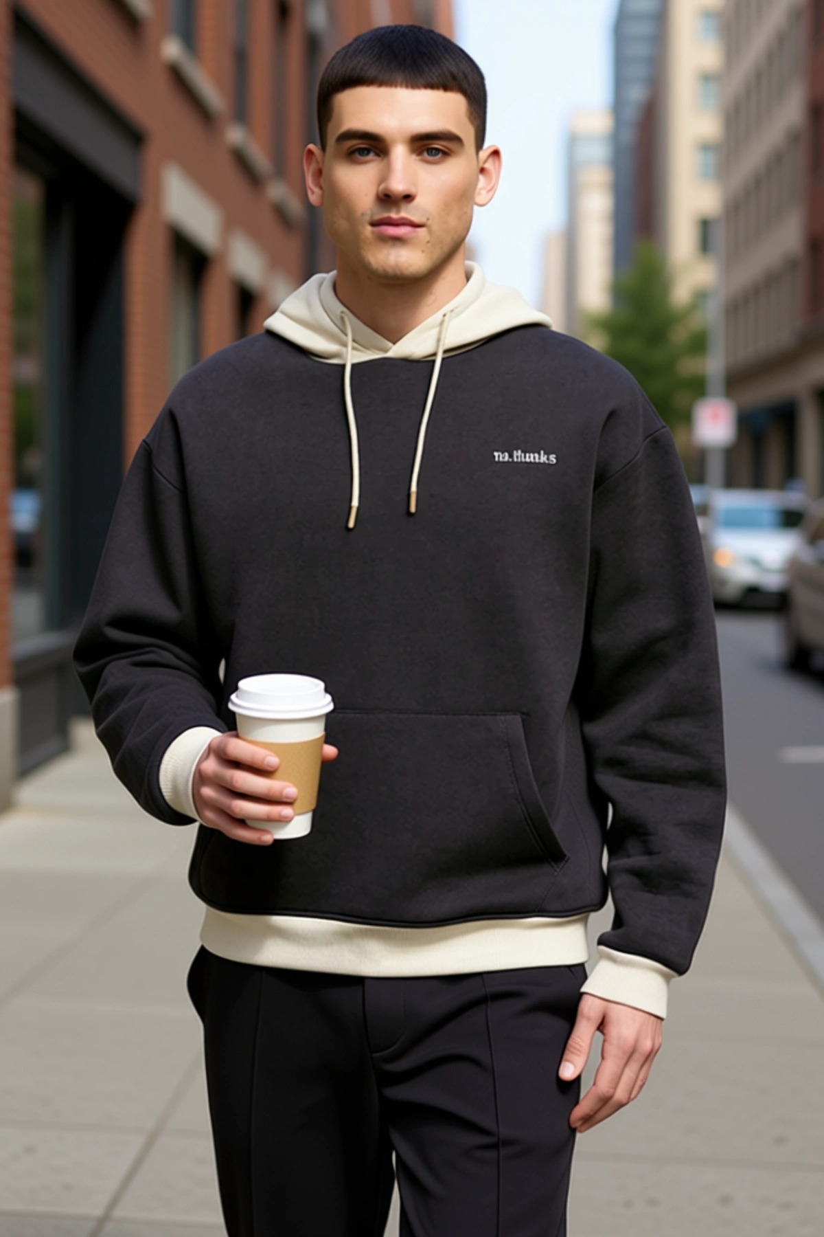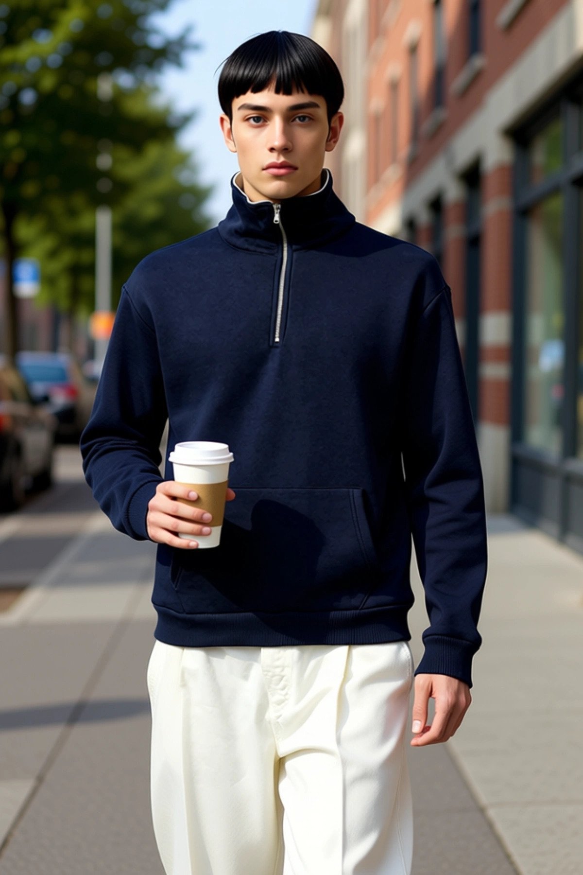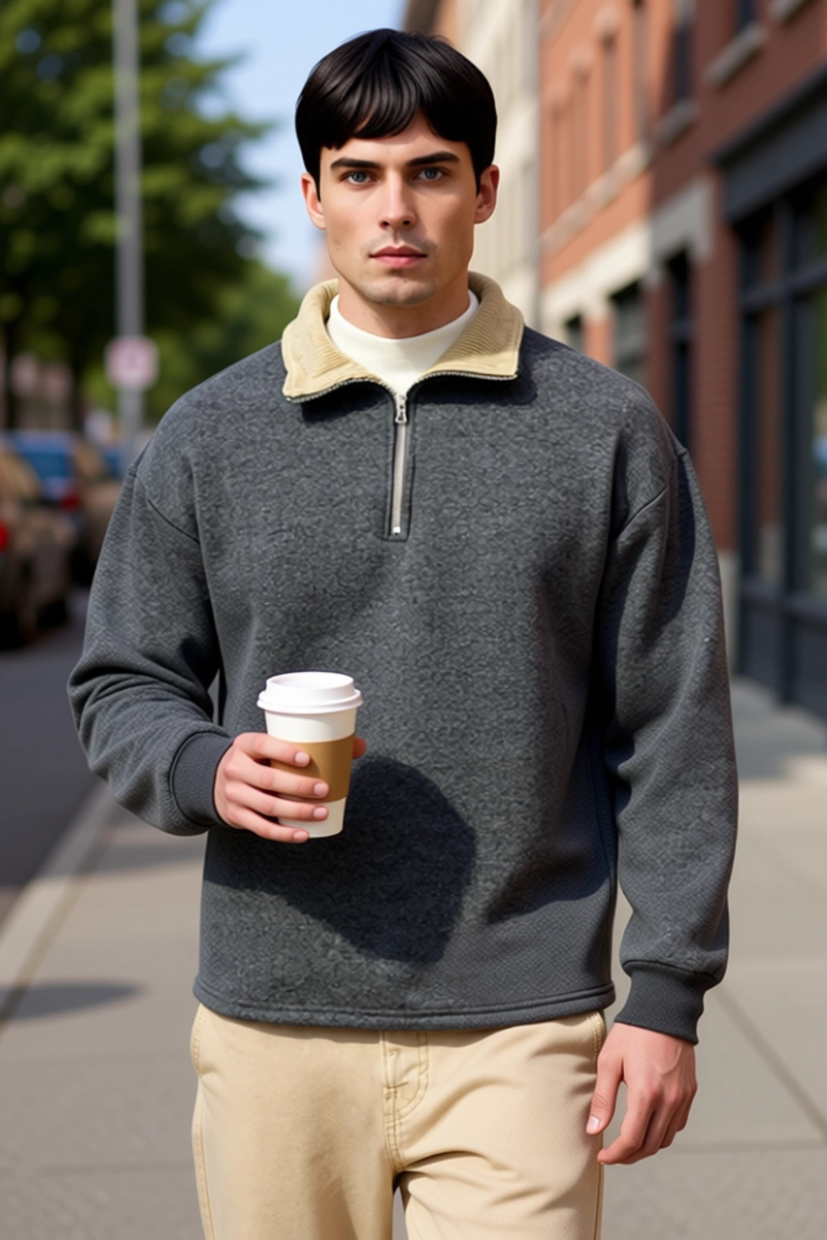 Erkek Dik Yaka Standart Kol Selanik Oversize Kalıp Sweatshirt Fonksiyonel Dayanıklı Modern