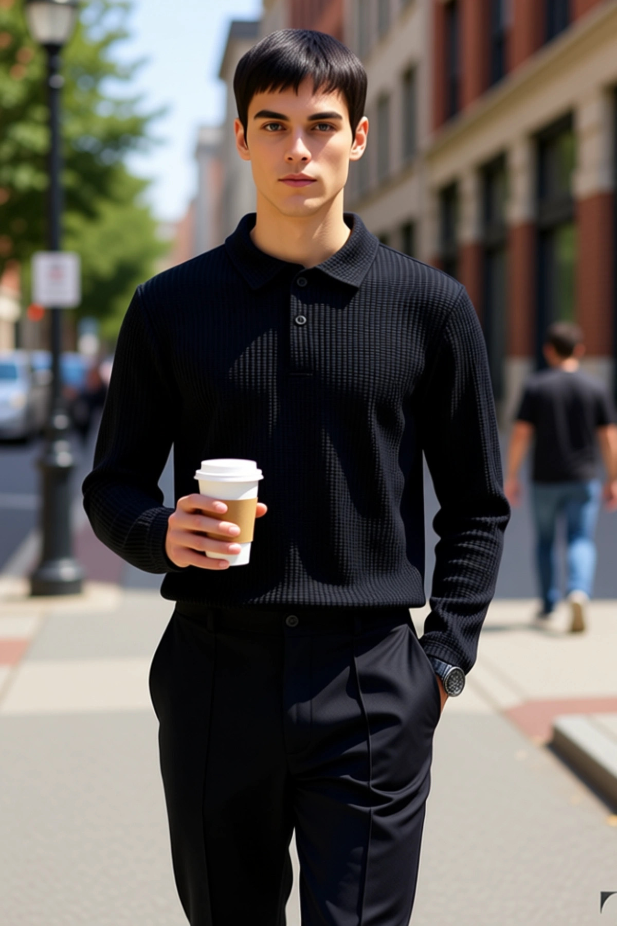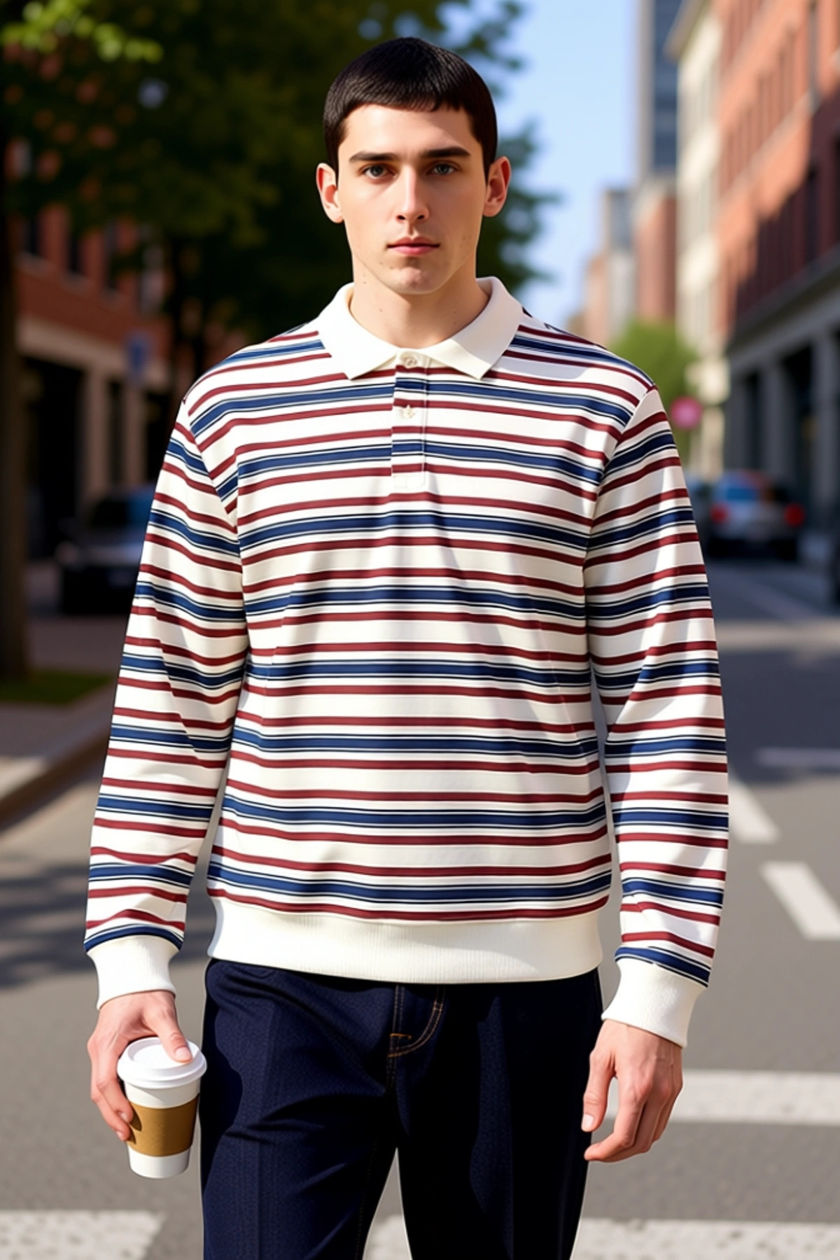 Erkek Polo Yaka Standart Kol Çizgili Sweatshirt Fonksiyonel Dayanıklı Kaliteli Konforlu Şık