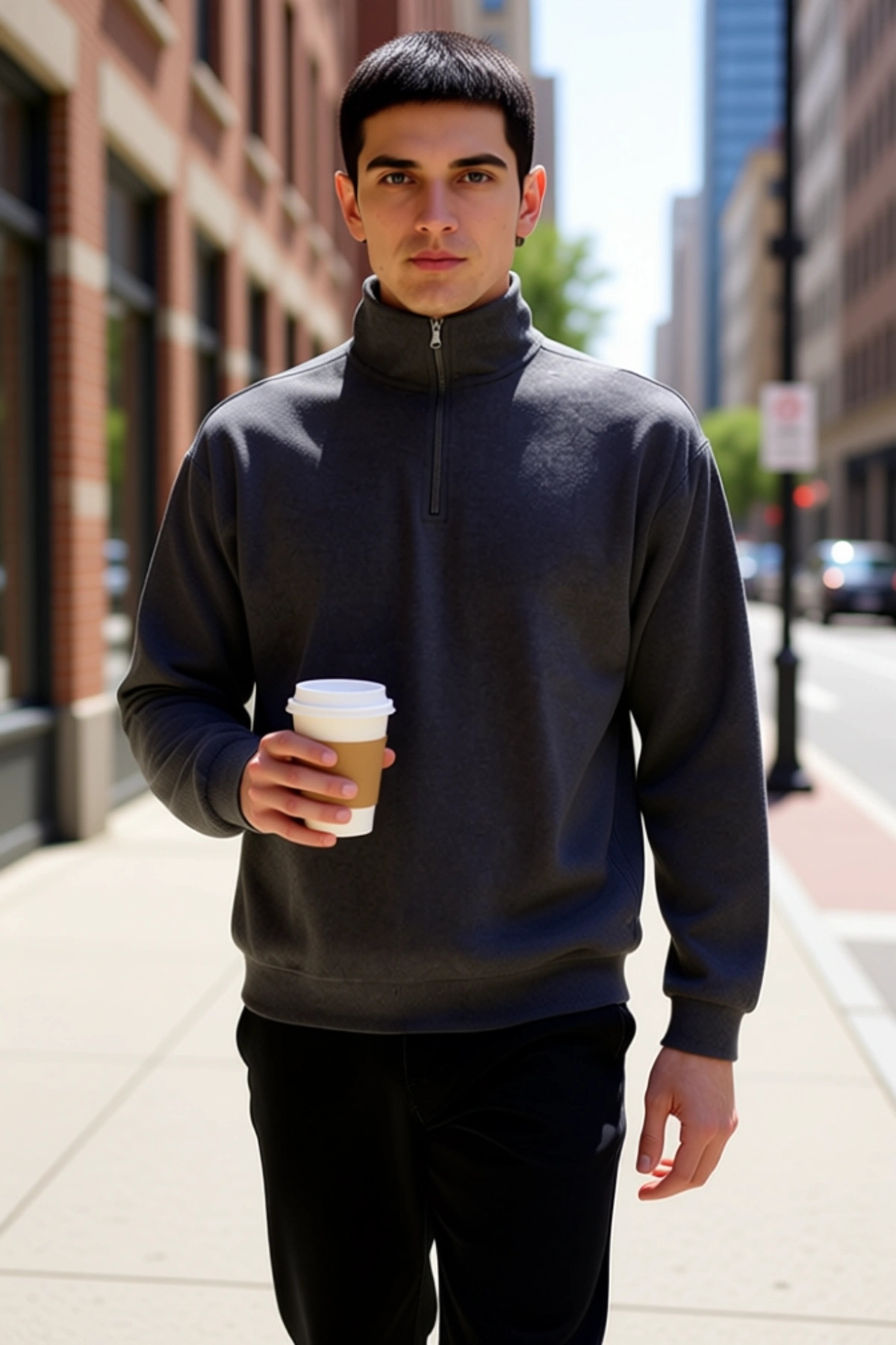 Erkek Dik Yaka Standart Kol Regular Kalıp Sweatshirt Fonksiyonel Dayanıklı Kaliteli Modern