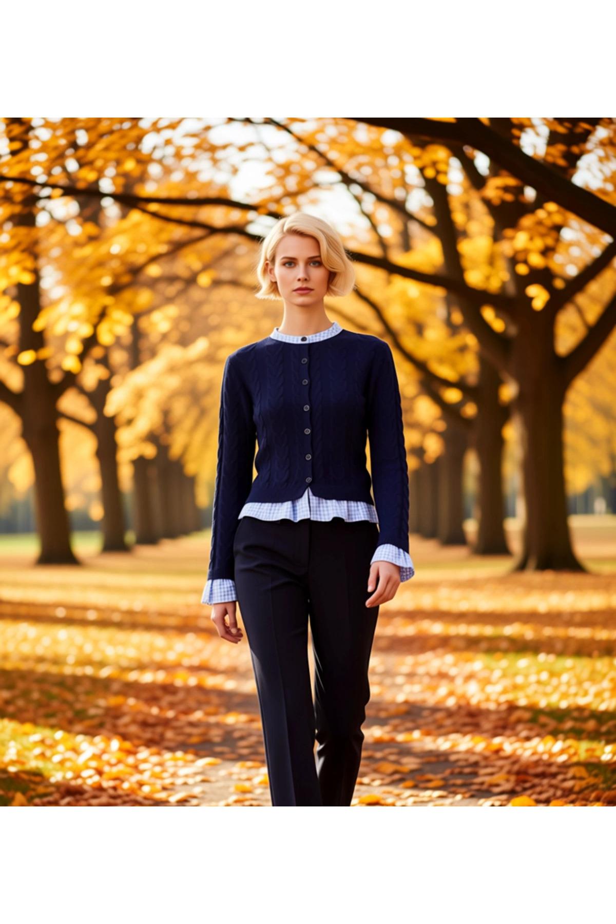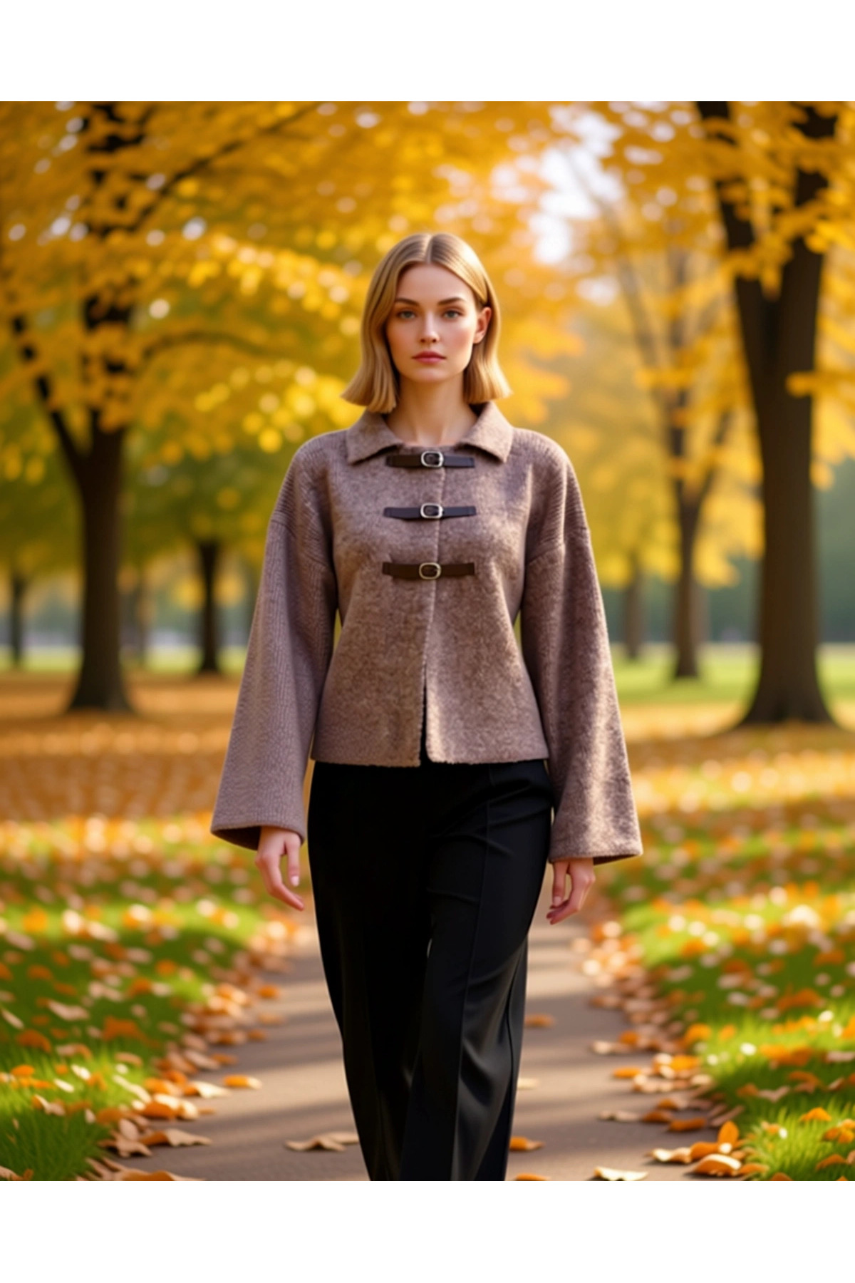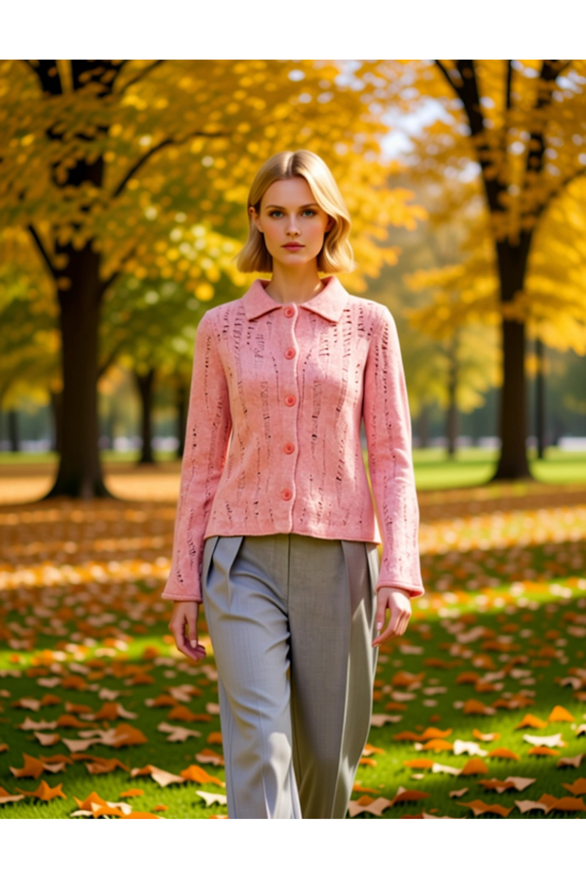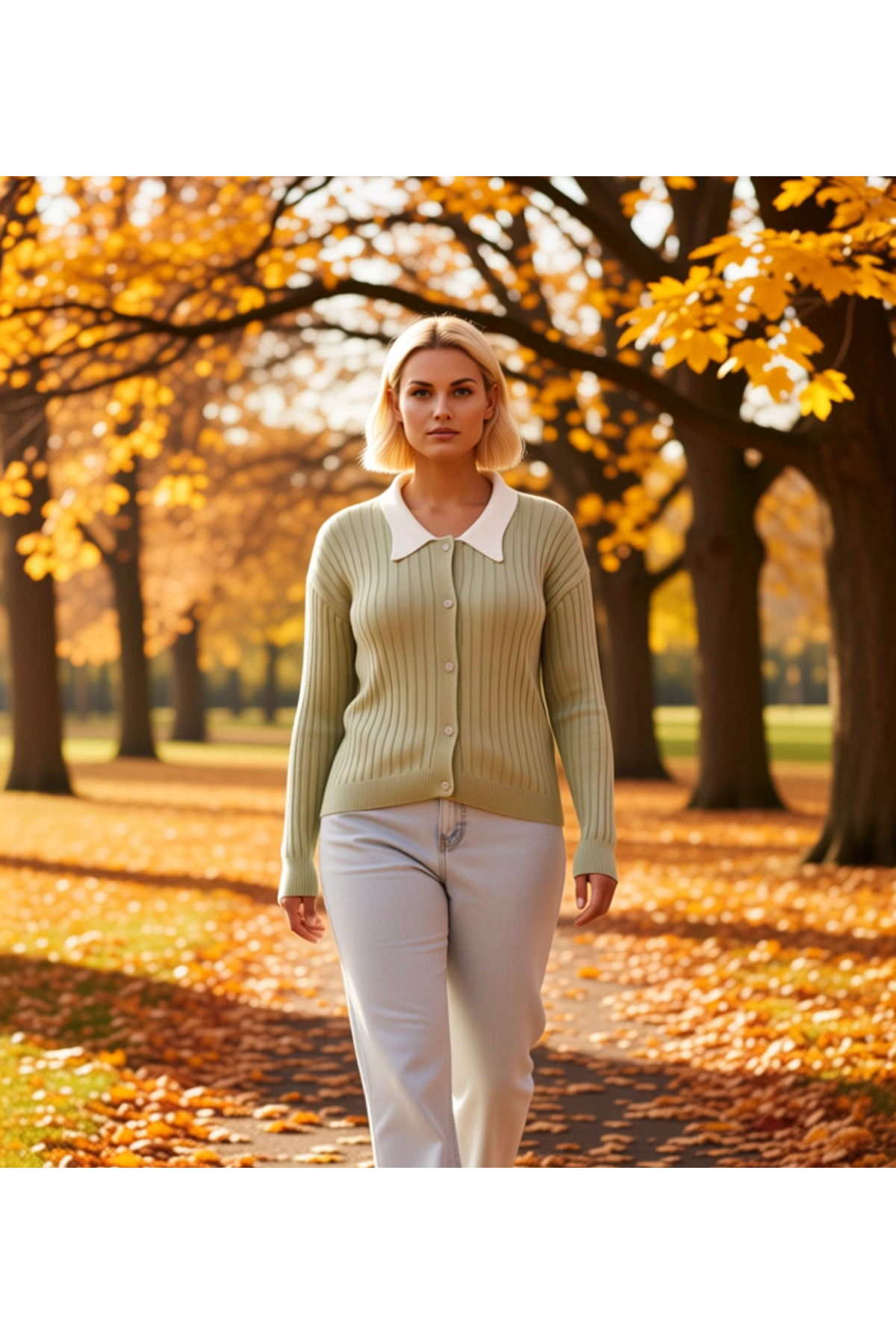 Kadın Şık Fitilli Dokuma Gömlek Yaka Detaylı Düğmeli Uzun Kollu Rahat Kesim Günlük Triko Hırka