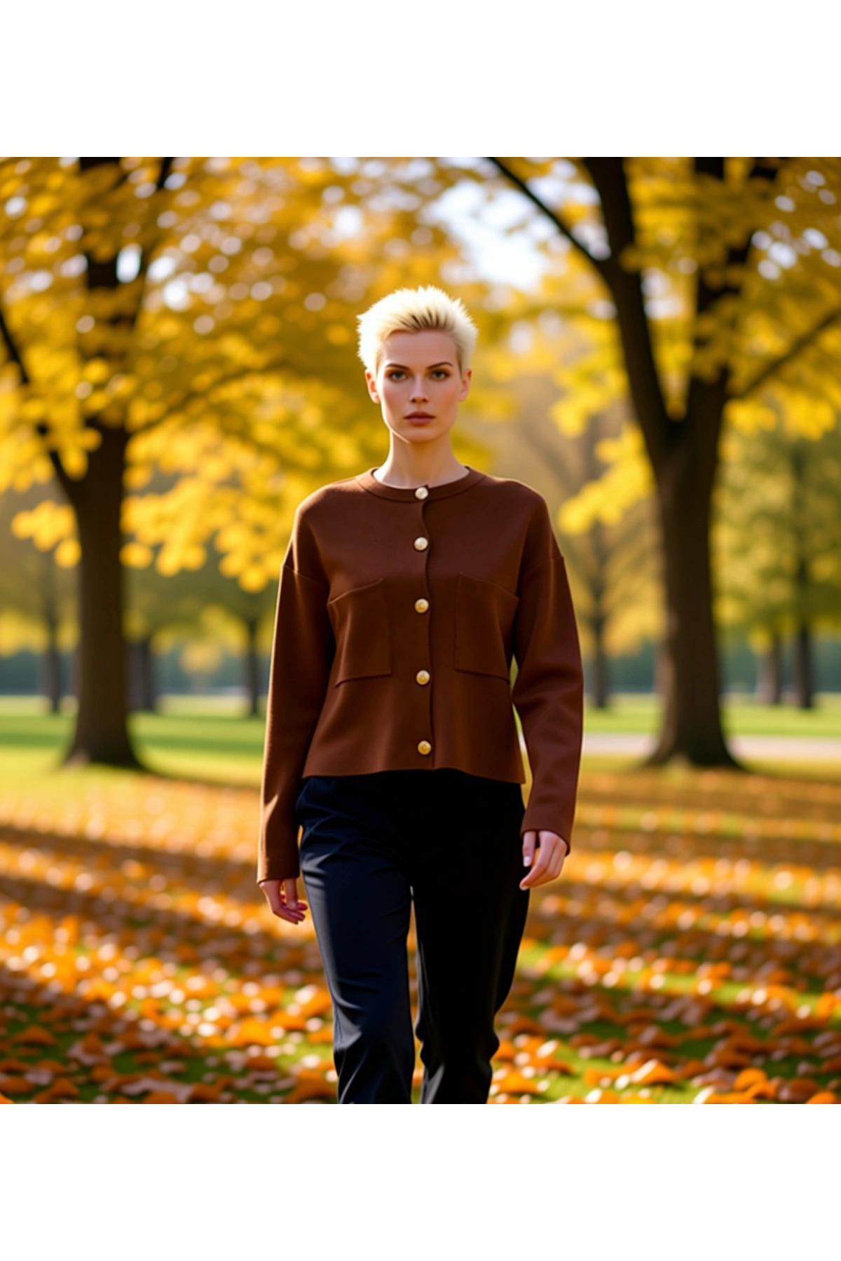 Kadın Düğme Detaylı Triko Hırka Ceket Görünümünde Rahat Kalıp Uzun Kollu Şık ve Konforlu Tasarım