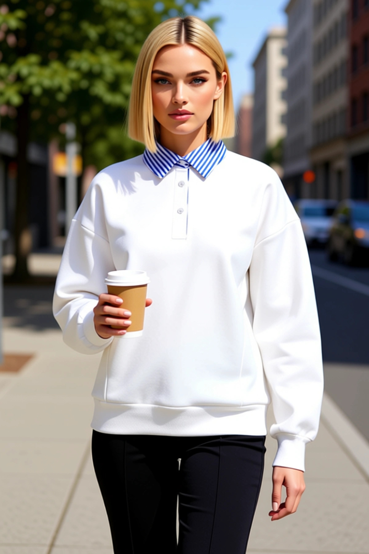 Kadın Polo Yaka Düşük Kol Düğme Detaylı Sweatshirt Fonksiyonel Dayanıklı Kaliteli Konforlu