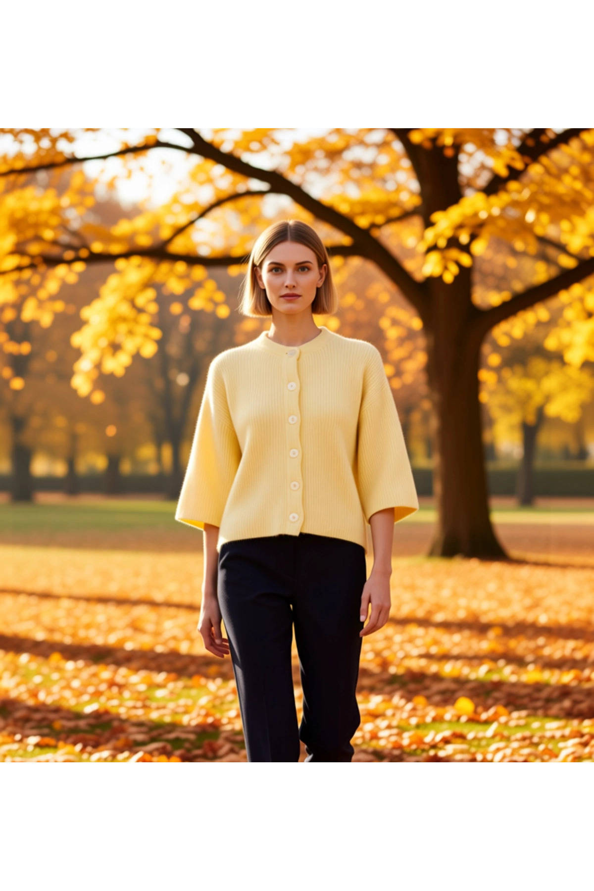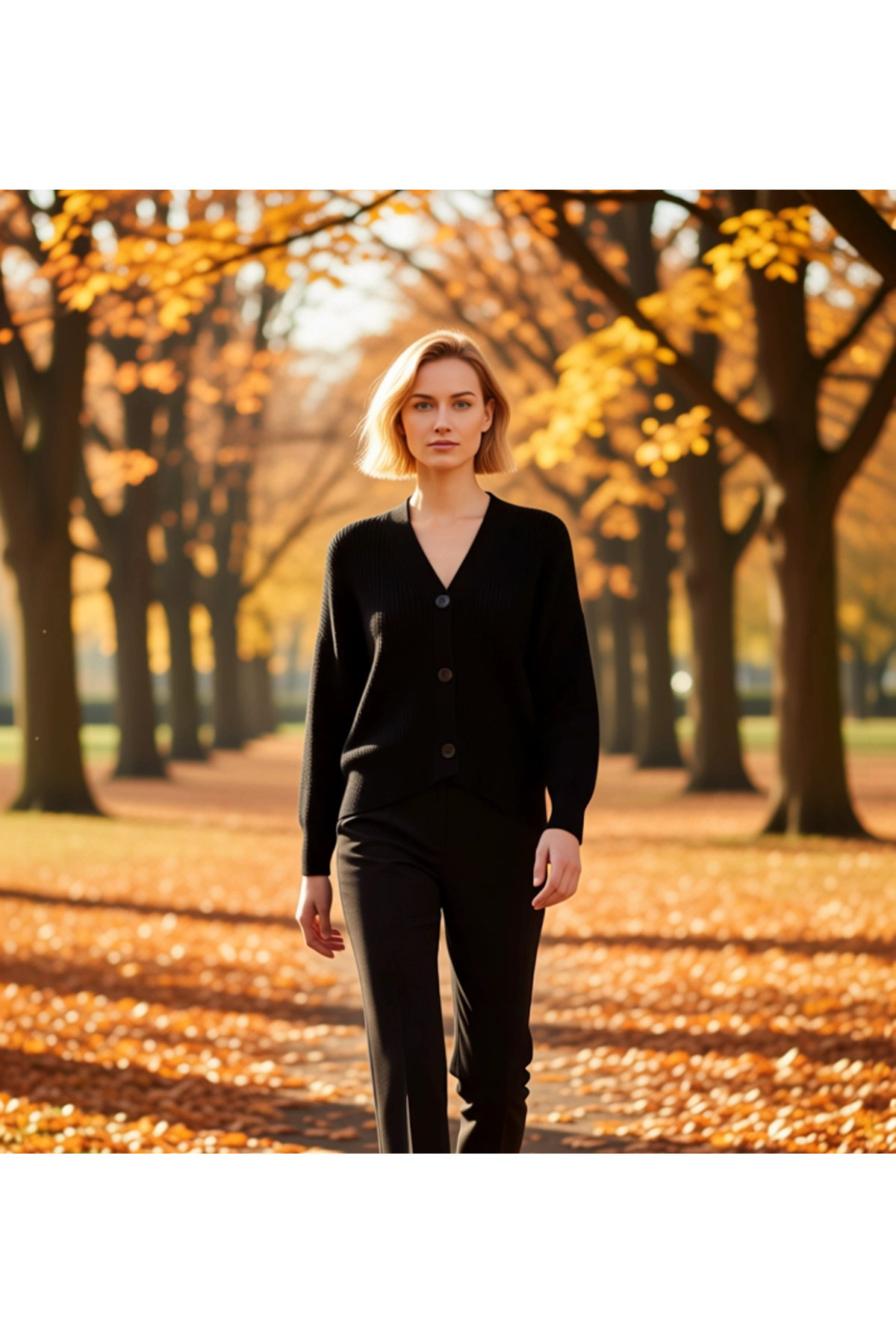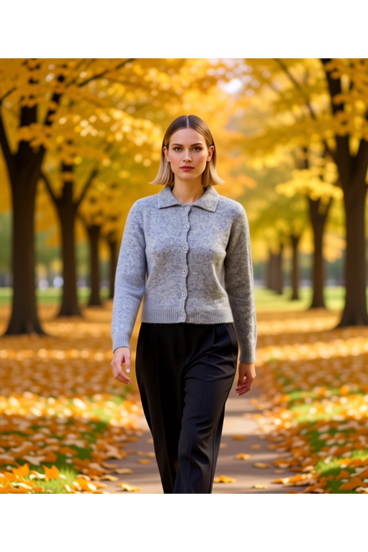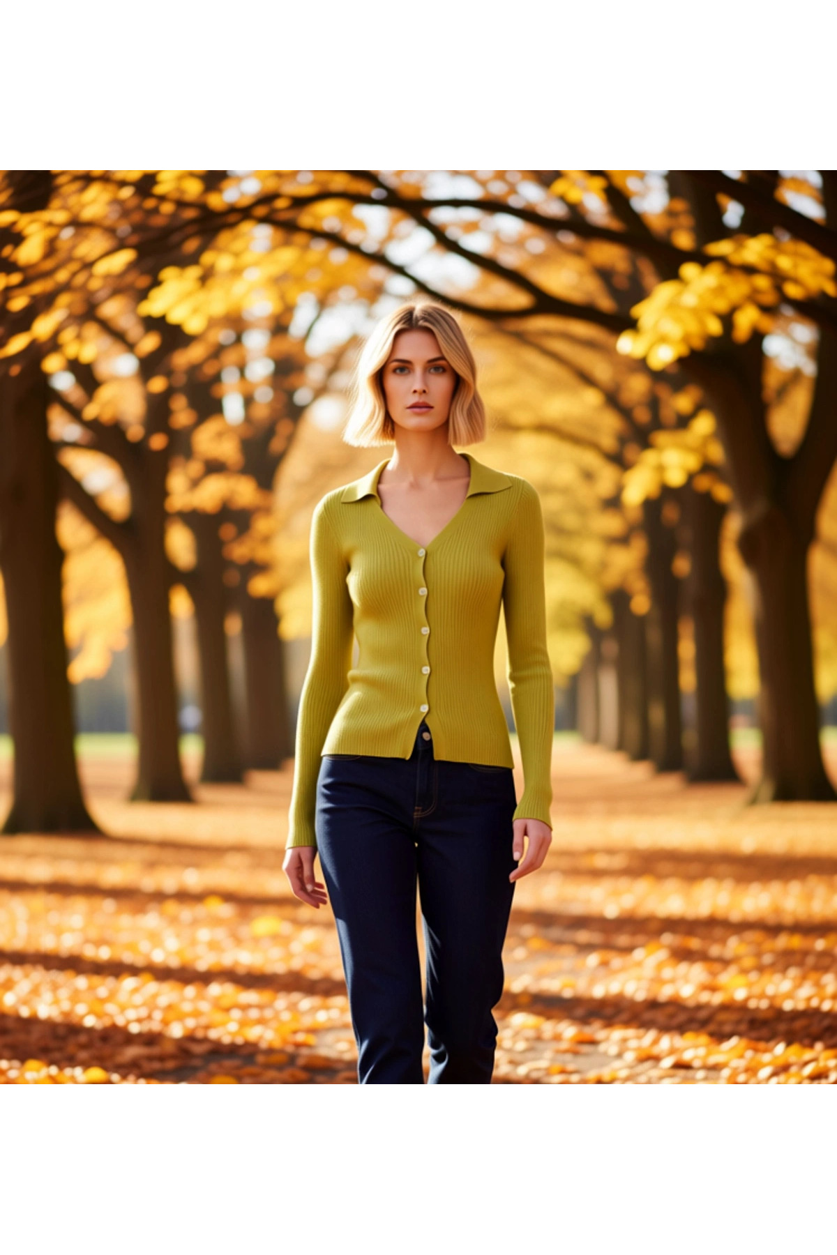 Kadın Polo Yaka Düğmeli Triko Hırka Modern Kesimiyle Gardırobunuzun Vazgeçilmez Parçası Olmaya Hazır
