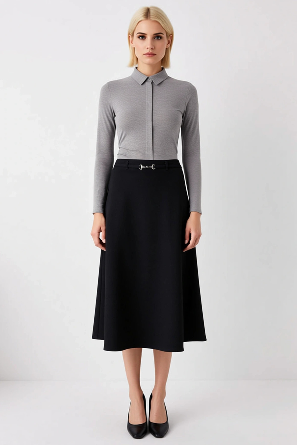 Kadın A Kesim Normal Bel Triko Midi Etek Fonksiyonel Dayanıklı Kaliteli Konforlu Estetik Şık