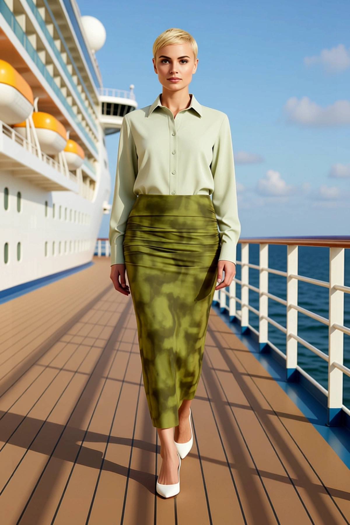 Kadın Midi Etek Kruvaze Yaka Büzgülü Kalem Kalıp Fonksiyonel Dayanıklı Kaliteli Konforlu Şık
