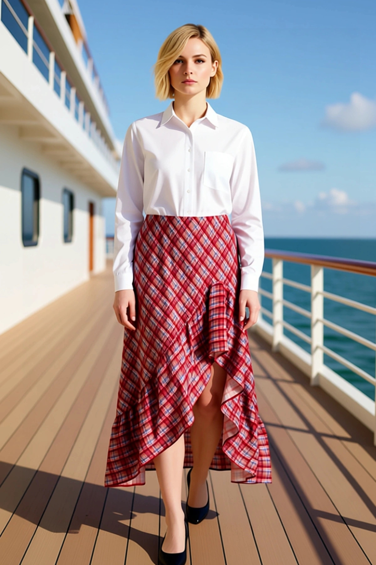 Kadın Asimetrik Midi Etek 0 Viskoz Ekose Desenli Fonksiyonel Dayanıklı Kaliteli Estetik