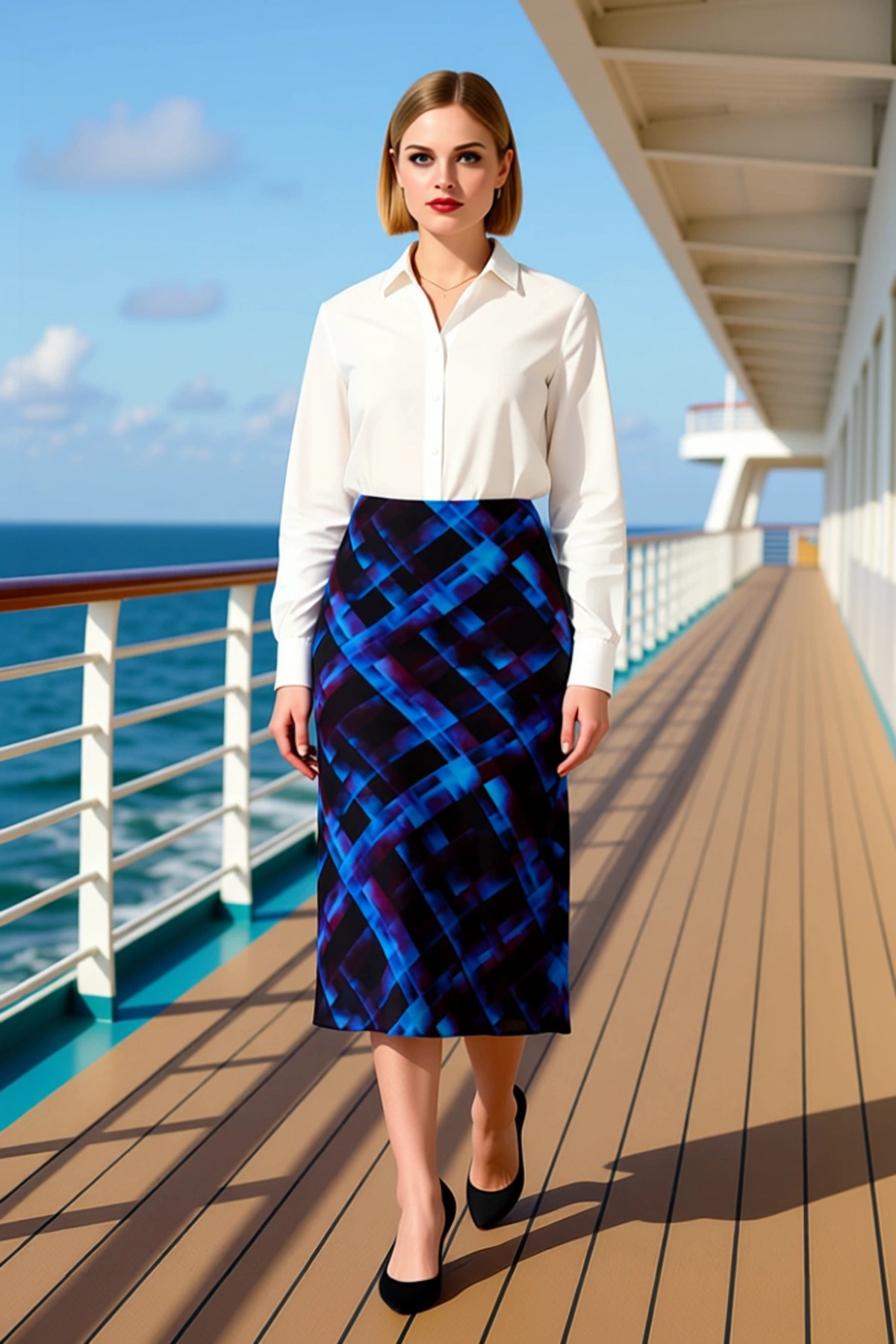Kadın Kareli Dokuma Şifon Midi Etek Yüksek Bel Standart Kalıp Fonksiyonel Dayanıklı Modern