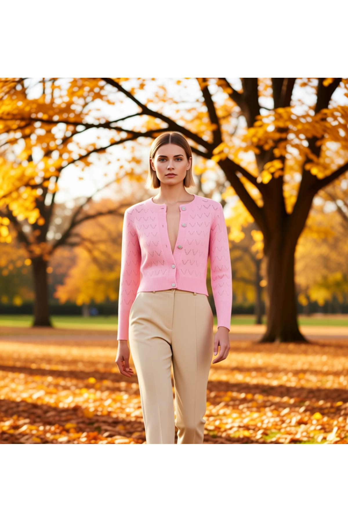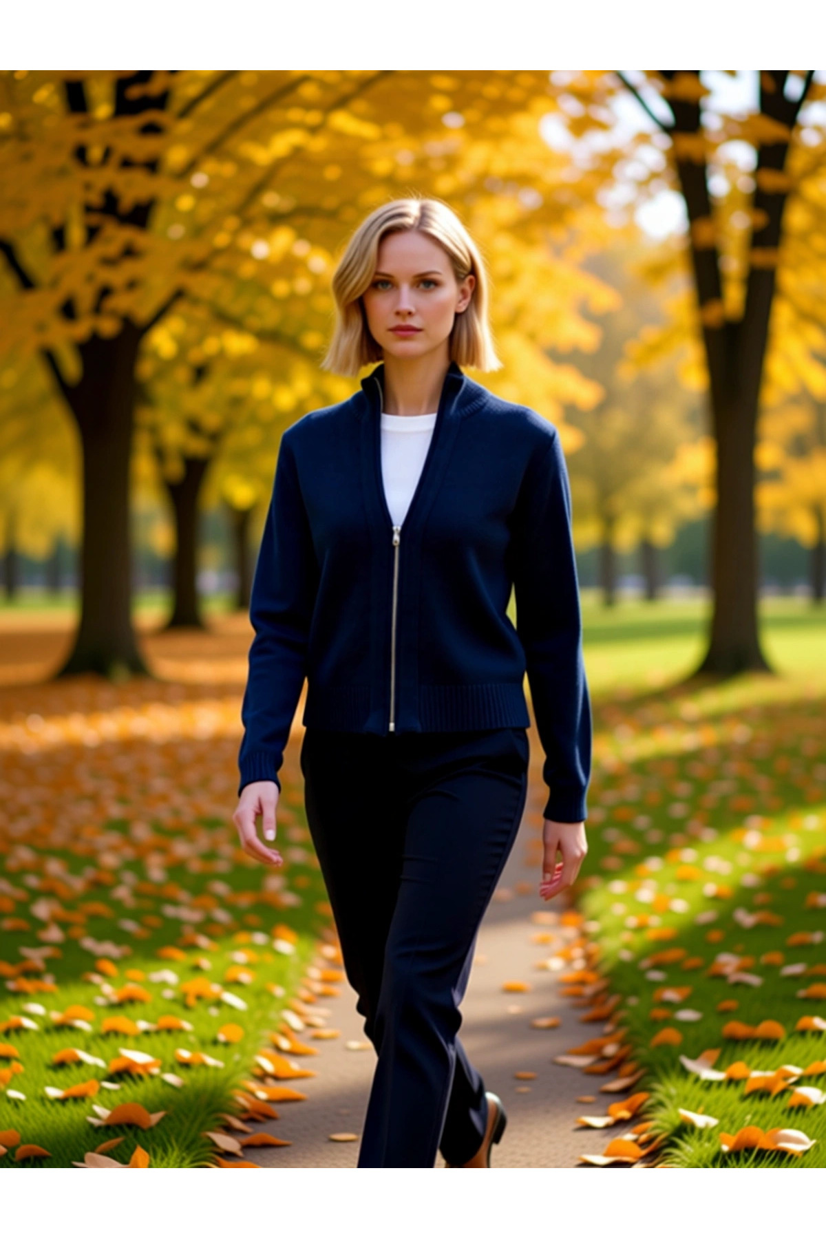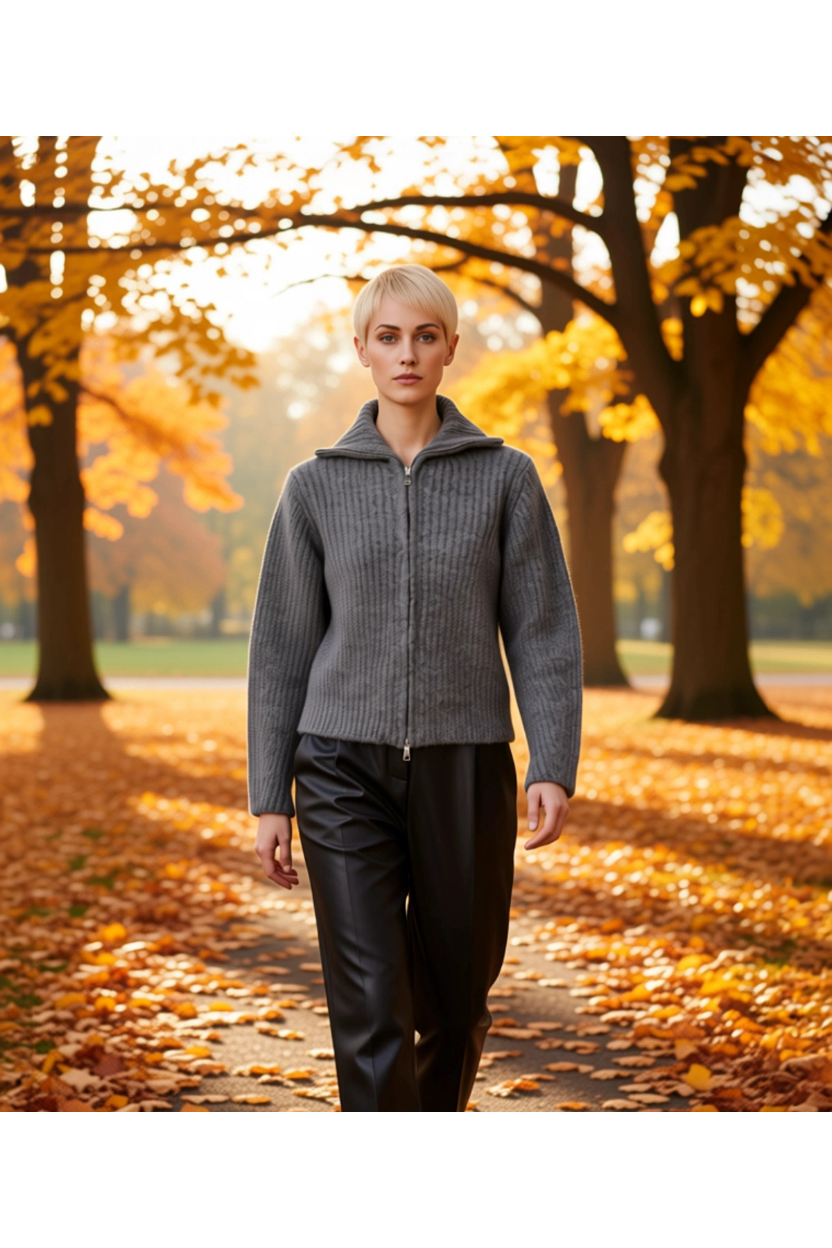 Kadın Crop Kesim Fermuarlı Polo Yaka Uzun Kollu Fitilli Triko Hırka Günlük Şıklık Ve Sunan Tasarım