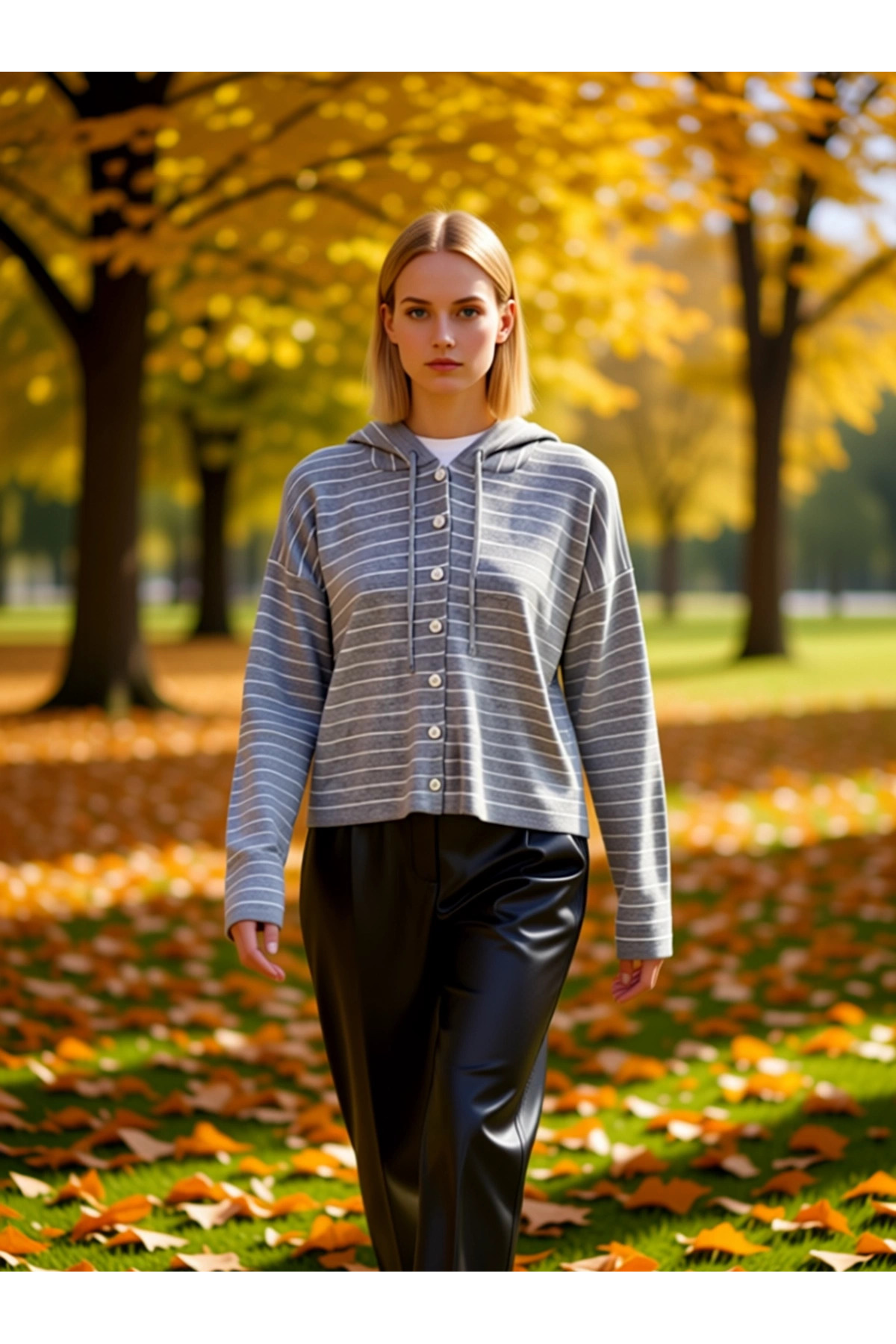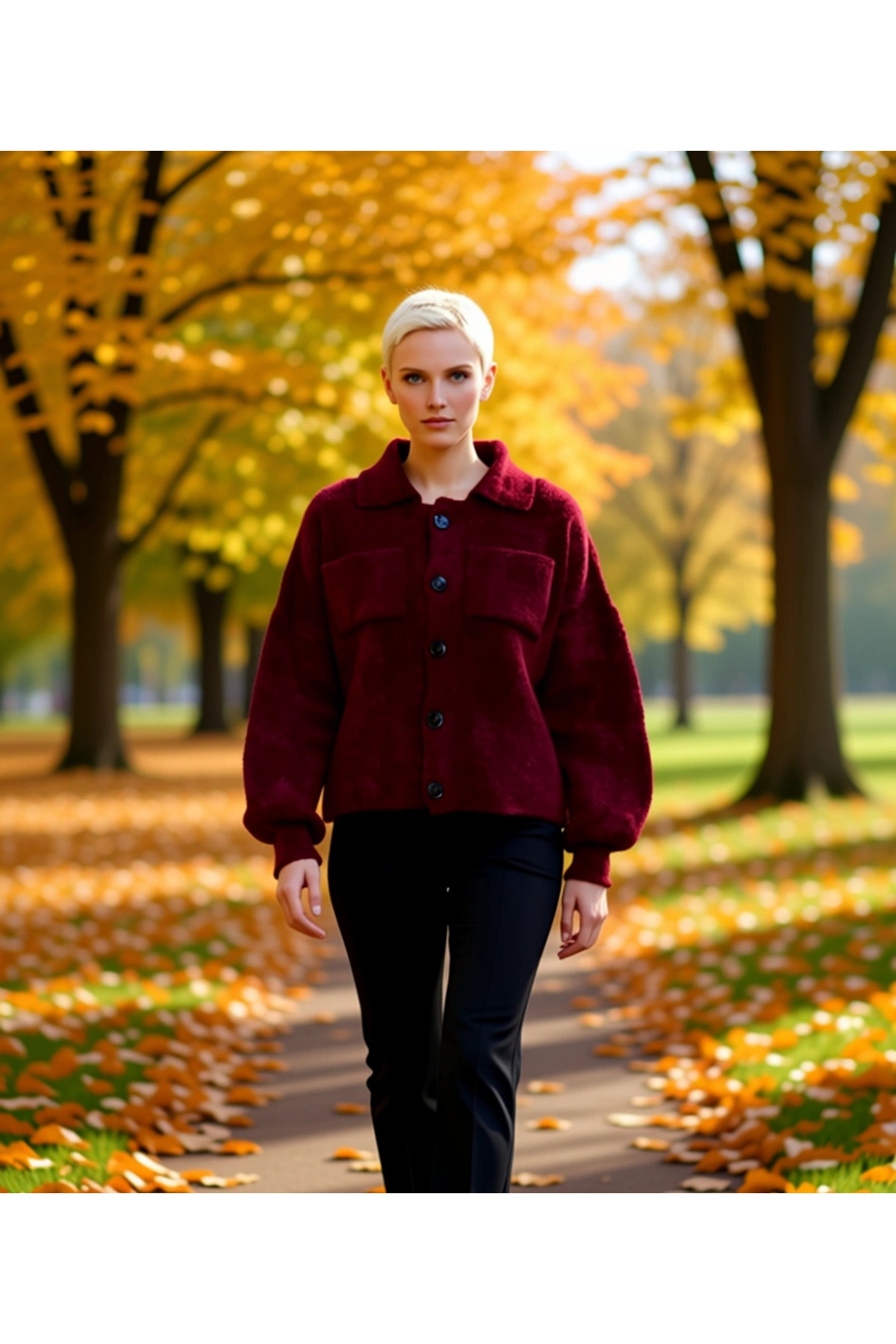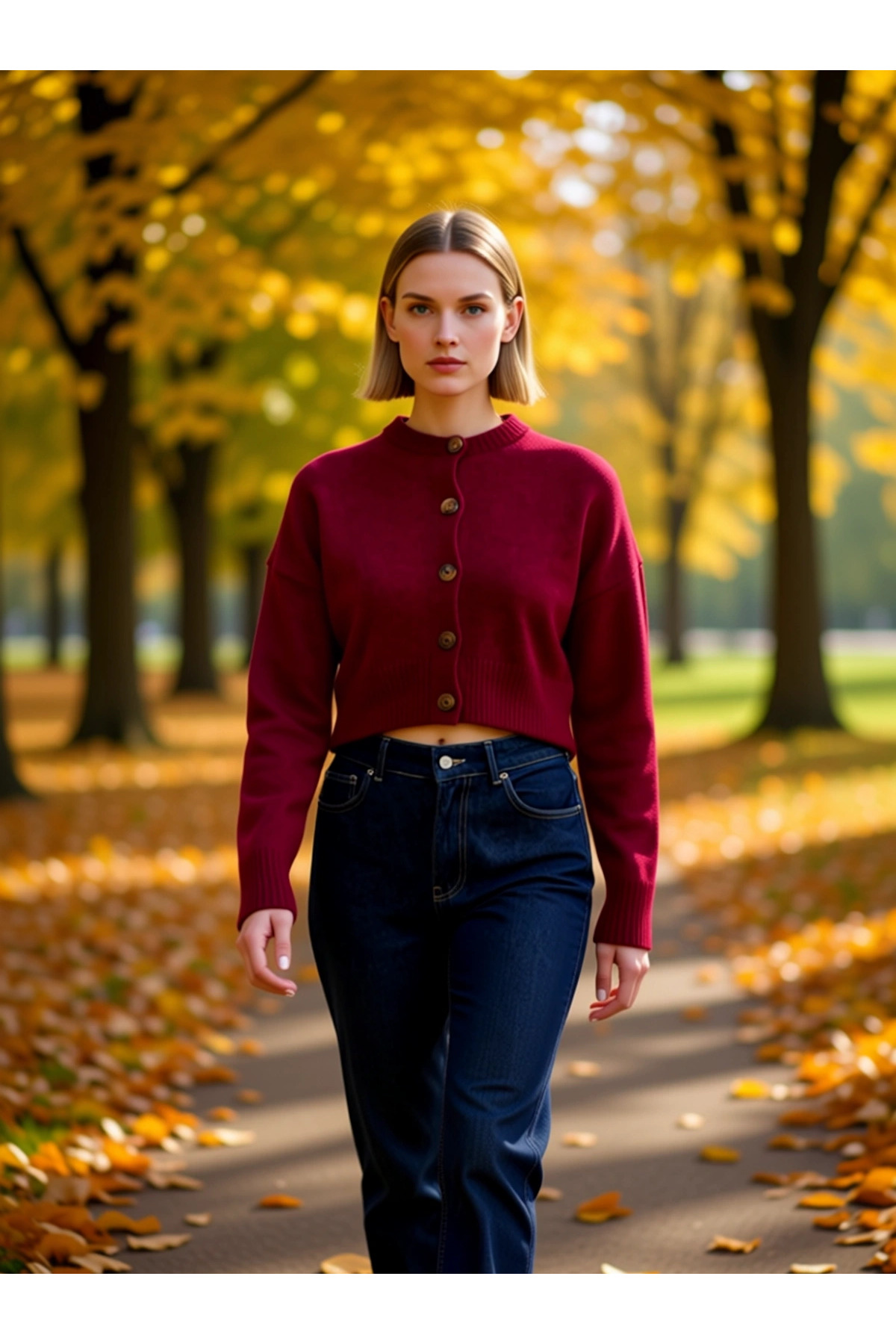 Kadın Crop Kesim Fermuarlı Polo Yaka Uzun Kollu Fitilli Triko Hırka Günlük Şıklık Ve Sunan Tasarım
