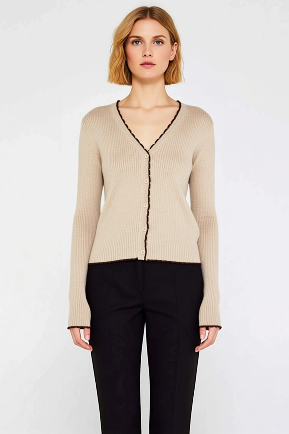 Kadın Fırfır Detaylı Düğmeli Triko Hırka Yumuşak Dokusuyla Günlük Kombinlerinize Zarafet Katıyor