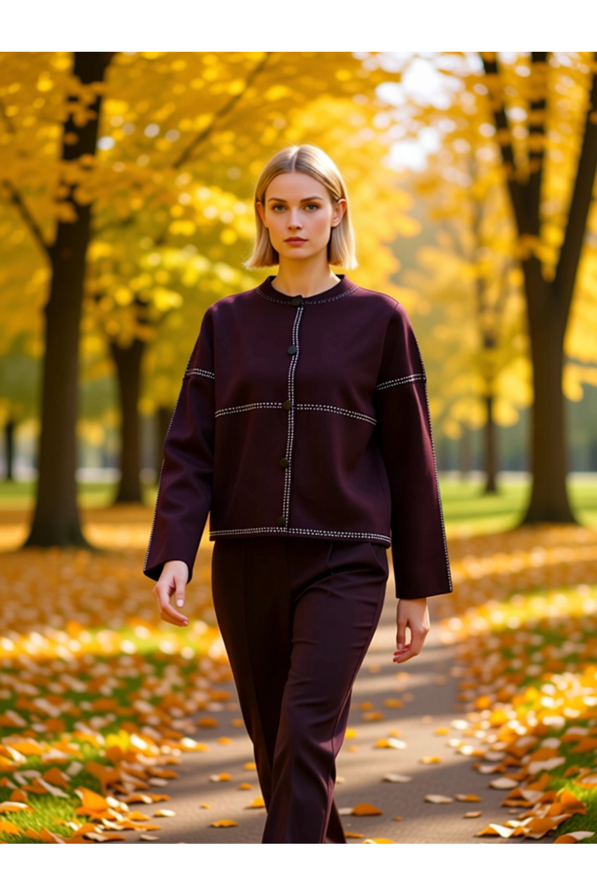 Kadın Kontrast Dikiş Detaylı Kısa Kesim Triko Ceket Geniş Kalıp Düşük Kol Bisiklet Yaka Tasarımı