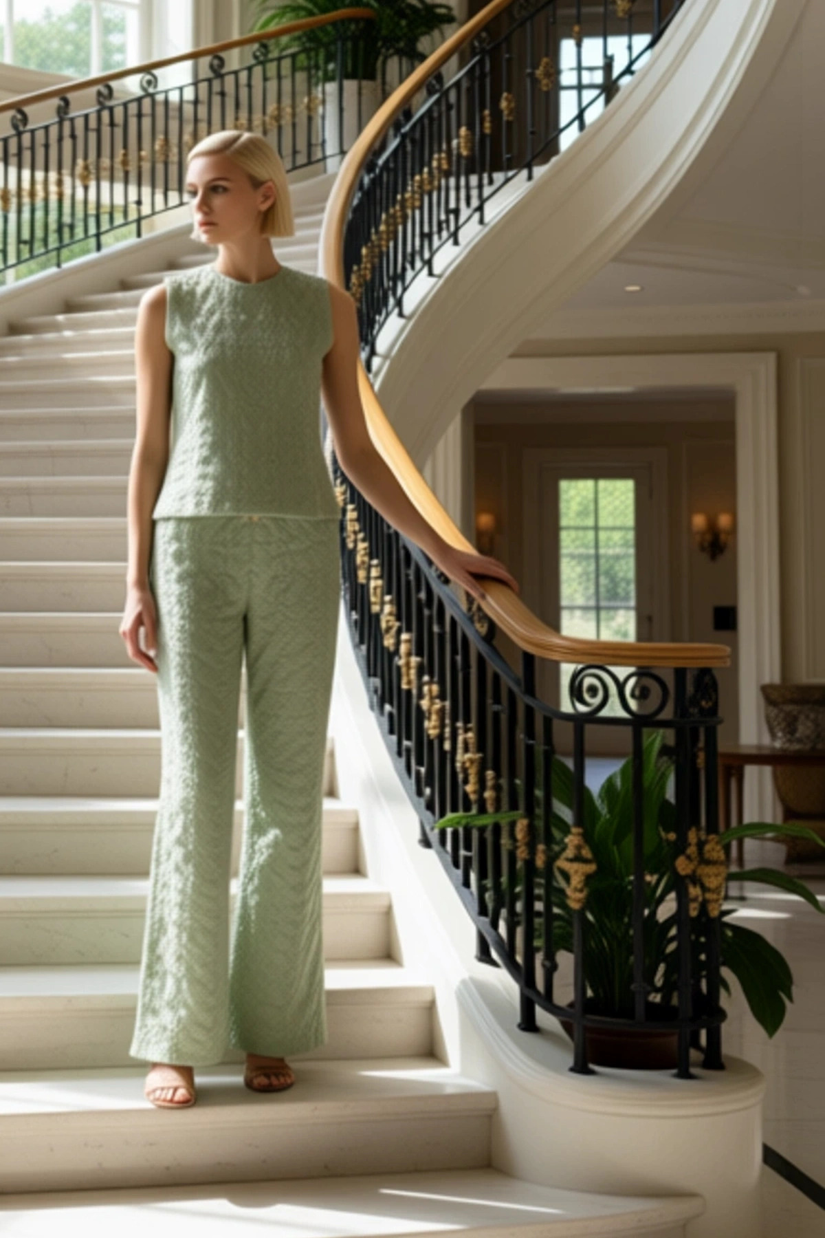 Kadın Alt Üst Kare Yaka Fitilli Triko Bluz Geniş Paça Pantolon Takımı Uzun Kollu Vücudu Saran Kesim