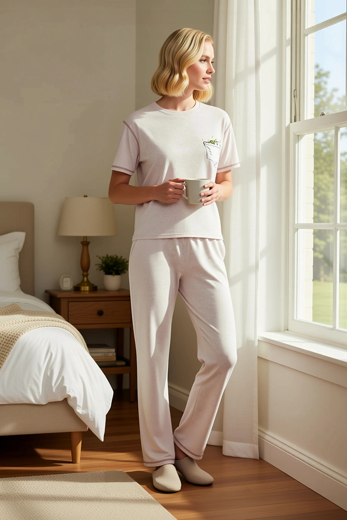 Kadın Bisiklet Yaka Kısa Kol Regular Kalıp Pijama Takımı Fonksiyonel Dayanıklı Şık 0 Pamuk