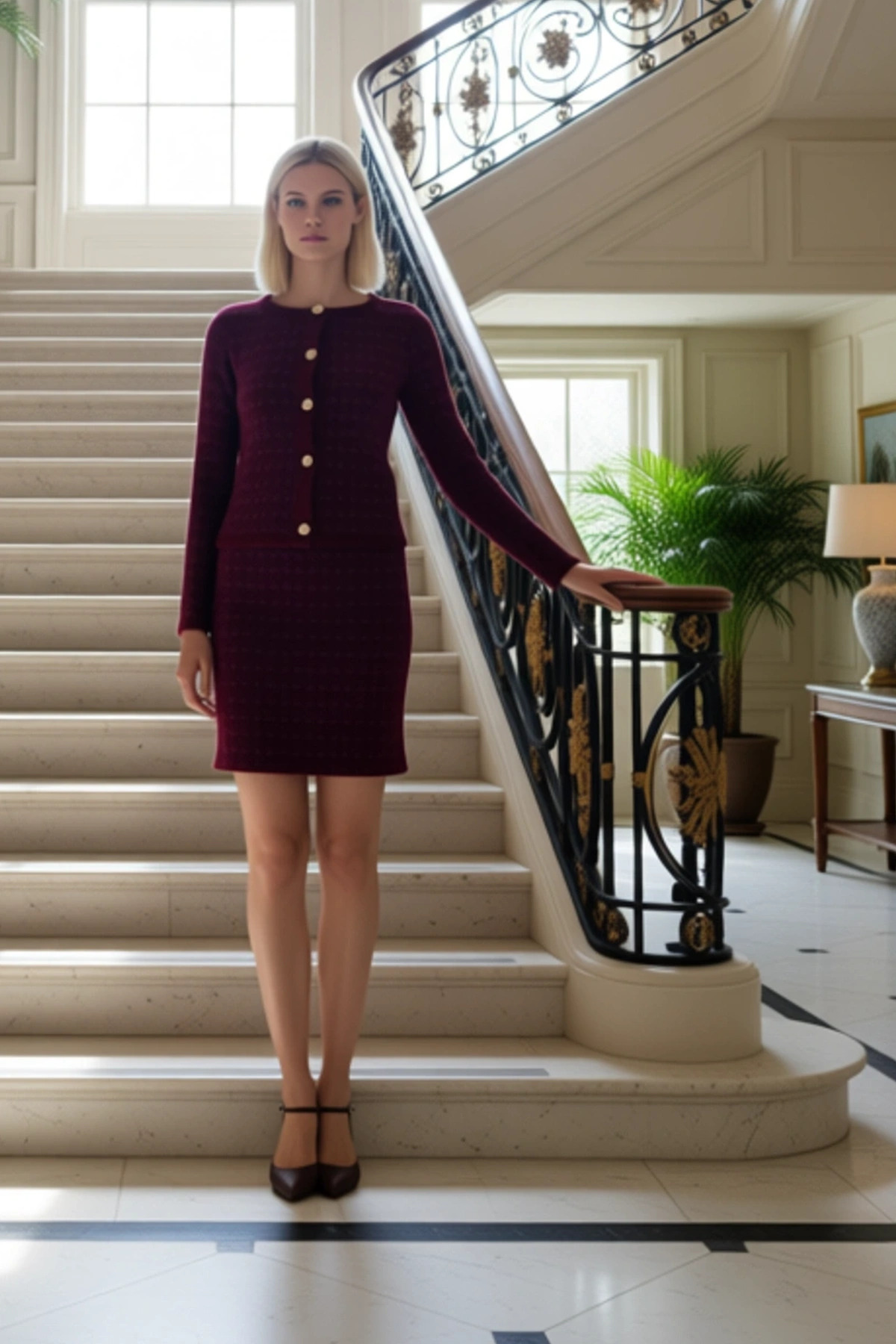 Kadın Alt Üst Dokulu Triko Hırka Ve Etek Takımı Modern Görünüm İçin Zarif Ve Konforlu Bir Bütünlük