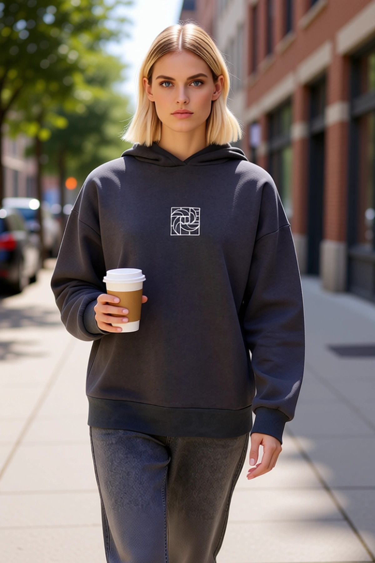 Kadın Kapüşonlu Düşük Kol Geometrik Desenli Oversize Örme Sweatshirt Fonksiyonel Dayanıklı