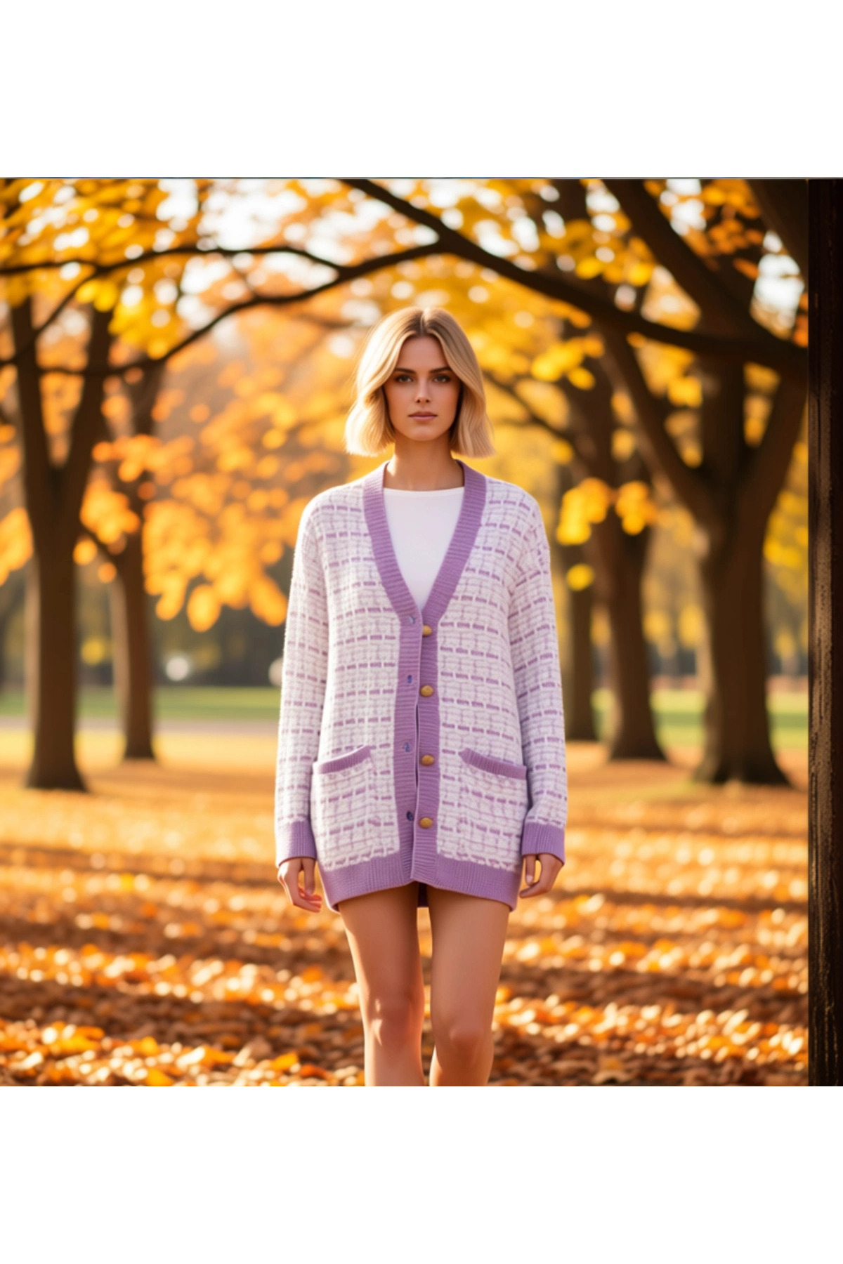 Kadın Oversize Crop V Yaka Düşük Kol Nakışlı Triko Hırka Portakal Dilimi Desenli Yumuşak Dokulu