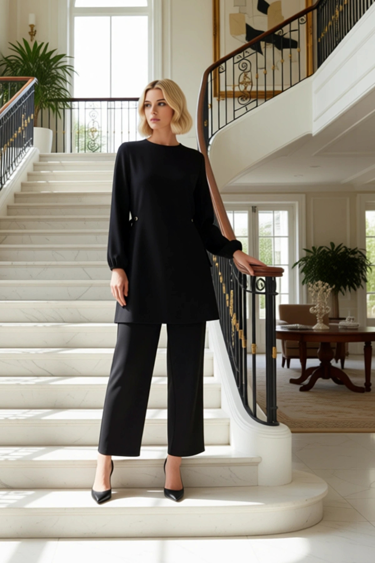 Kadın Alt Üst Aerobin Tunik Pantolon Takım Kuşgözü Bağlama Detaylı Konforlu Şık Günlük Giyim Seçimi
